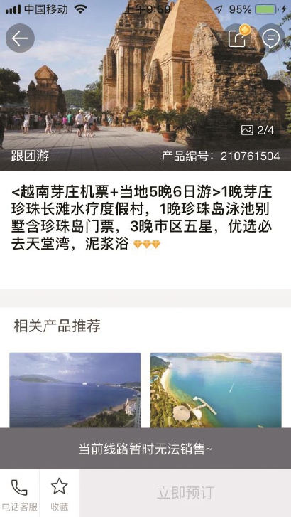 姜女士选择的越南芽庄跟团游产品已下架。