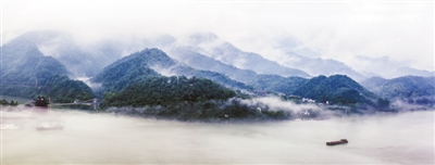 在浙西北桐庐的山水间行走,时常会与吟咏此地风光的古诗词相遇。在富春江畔的一长排诗碑上,在某家餐馆的墙壁上,在某个古村村口的碑记上,这些清隽的诗句不期然而然地跳进游人眼帘,为这一方土地上的无边美丽做着生动的脚注。 桐庐境内,峰峦竞秀,江河争流,山与水的交融,营造出一种清幽殊绝的韵致,被誉为“秀丽天成”。它的魅力的源泉,当首推富春江。富春江仿佛一条银色的玉带,绾接起两岸的山峦、田野和村落,迤逦连绵,延展成为一幅美不胜收的巨幅山水画卷。 “钱塘江尽到桐庐,水碧山青画不如。”出自晚唐诗人韦庄笔下的诗句,清浅明丽,亲切可人,如同江水带给人的温润熨帖的感受。钱塘江流入桐庐、富阳境内,被称为富春江,这一段江山之美,尤其桐庐境内,赢来题咏无数。苏轼这样赞美它:“三吴行尽千山水,犹道桐庐更清美。”而到了陆游,更是触目所及皆堪怜爱,“桐庐处处是新诗”,乃至生出热切的向往,“安得移家常住此”。 诗人们寄情山水,屐痕处处,遍览天下美景,眼光往往挑剔。但桐庐却让他们这般迷恋痴醉,不吝赞美,不难想象,它该有着怎样独特的魅力。 千百年间弦诵不绝的古典诗文,也仿佛一条长河,有着自己的上游和源头。对于这个地方,早在南北朝时期,吴均的《与朱元思书》一文中,就已经有着极为生动的描写了。“风烟俱净,天山共色。从流飘荡,任意东西。自富阳至桐庐一百许里,奇山异水,天下独绝……”在桐庐的几天,与富春江时即时离,每次相逢也都是不同的河段,但不论是在哪里,只要看到一泓碧绿的江水,这些几十年前已背诵如流的句子,就会又一次鲜明活泼地跳进脑海。 诗画不分家。富春江的涛声,在诗人吟哦声中化成一行行韵脚,而它的浪花溅落到宣纸上,便晕染成一幅幅画卷。元代黄公望的传世名作《富春山居图》,描绘了富春江两岸的初秋景色。六百多年前,年近八十的黄公望游历至此,感慨于这里“山峰俊奇,峡谷雄伟,江流气度不凡,美不胜收”,于是长住下来,用整整四年的时光,走遍富春江两岸的峰峦林壑,绘就了这幅被誉为“画中之兰亭”的山水长卷。据说,八成画面都取材于桐庐境内的江山景色。画卷上,天地静穆,远山微茫,江阔波渺,林峦浑秀,草木华滋,村舍茅亭之间,樵夫钓客的身影参差隐现,弥漫着萧散淡泊的诗意。凭借艺术的非凡力量,大自然之美获得了永恒的生命。 我与富春江的首次相遇,是在桐君山对岸。隔江北望,富春江与其支流分水江交汇处,一座青黛色的山峰仿佛浮在水面上,林木蓊郁。这便是桐君山,旁边是桐庐老城。翠峰如簇,在宽阔澄碧的江面上投下浓重的倒影,又被阳光和江风撕扯成一缕缕一片片的粼粼波光,跳荡不已。几只白鹭悠然地掠过眼前的江面,转瞬间又隐没于不远处几株榕树茂密的树冠中。 桐君山是桐庐的标志,桐庐的地名也与这座山有关。相传有一老人,于此山中桐木之下采药结庐,人问其名,老人不语,手指桐木。后来人们就称其为桐君,其所居之山为桐君山,所居之屋为桐庐。这便是桐庐命名的由来,散发着浓郁的隐逸气息。而桐君老人,也成了后世供奉的中药鼻祖。 二 钟灵毓秀的风光形胜,丰盈飘逸的诗画情韵,桐庐的大自然构成了一种十足的魅惑。置身这样的环境中,显然更容易萌发对于自由洒脱生活的向往。将身心融入这一片清幽山水,观烟岚云霞,听松涛流泉,这样的诱惑,岂不是自然而然且难以抵抗? 的确有人以一种义无反顾的决绝,将整个生命交付给这里的灵山秀水。在富春江最美的七里泷一带,江面宽阔,碧波湍急,翠峰簇拥,密林森茂。远眺江畔,那一处高阁连亘、飞檐翘角的所在,便是严子陵钓台。严光(字子陵)为东汉时代的高士,曾与刘秀一同游学,后来刘秀即位光武帝,以盛礼邀严光入京,许以谏议大夫的高位。严子陵固辞不就,归隐富春江畔,耕钓以终。清晨,山林间飘荡着淡蓝色的雾气,黄昏,江面上闪烁着碎银般的波光;奔泻直下的溪流,振翅高翔的水鸟,修竹佳木在和风中窸窣作响,岩石旁侧有奇花异草静静开放……数十年间,这些风景成为他生命的背景。每一幅画面,每一个细节,都是对自由旷达的生命方式的生动诠释。 一缕精神的烟云,自此间的林泉烟霞中氤氲而出,穿越时空的阻隔,弥散在后世众多典籍文章的册页和字行之间。严子陵甘愿做一名烟波钓叟,在大自然中寄托自己的灵性。这便是仰观俯察,静思默想,体味万物之美,探究存在的奥秘,并从中获得心灵的愉悦,精神的提升。 连那些胸中鼓荡着侠气剑胆的人,脚步一踏上桐庐的地面,心灵也不由变得柔软温润。最有说服力的,无疑该是范仲淹了。这位北宋名臣、杰出的政治家和文学家,因为上疏直言,不为当权者所喜,一生屡遭贬谪。第二次被贬,便是出任睦州知州,当时又叫桐庐郡,辖地包括今天的桐庐、建德等地。虽然半年多后就奉命移守苏州,但就在这短暂的时间里,却先后写成《出守桐庐道中十绝》及《萧洒桐庐郡十绝》等许多作品,几乎占到其诗文总量的六分之一,足以证明他对此地的深厚情感。 既渴望报效社稷,造福苍生,建功立业,又向往闲云野鹤,优游林泉,物我两忘。在范仲淹身上体现得颇为鲜明。他在《岳阳楼记》中抒发了“先天下之忧而忧”的亘古情怀。他知守桐庐期间的诗作,便充分表露了他对大自然和洒脱适意的生活方式的倾心。尤其是在《萧洒桐庐郡十绝》中,十首五言绝句的每