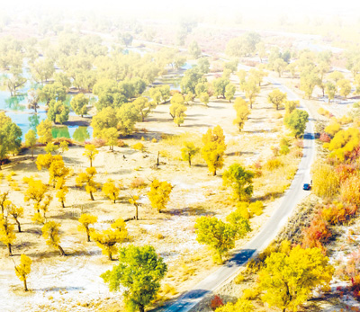 新疆巴音郭楞蒙古自治州尉犁县境内秋景绚丽。影像中国