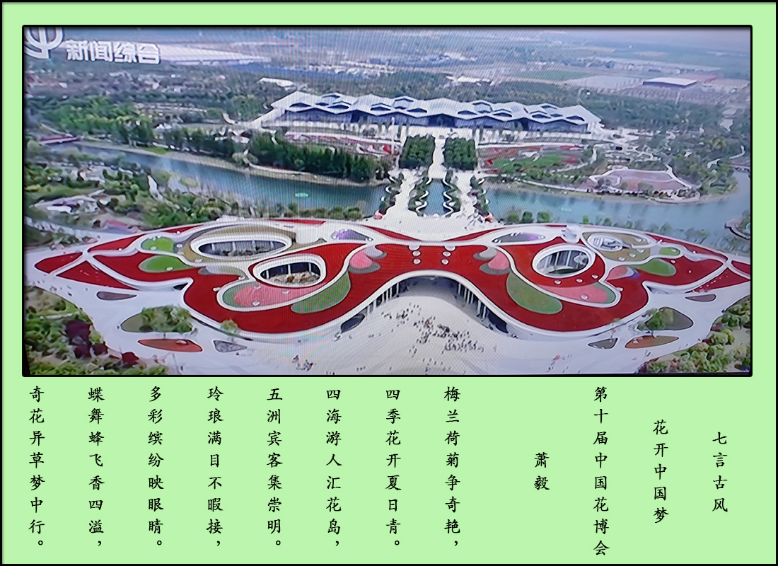 第十届中国花卉博览会 梅兰荷菊争奇艳, 四季花开夏日青。 四海游人汇花岛, 五洲宾客集崇明。 玲琅满目不暇接, 多彩缤纷映眼睛。 蝶舞蜂飞香四溢, 奇花异草梦中行。