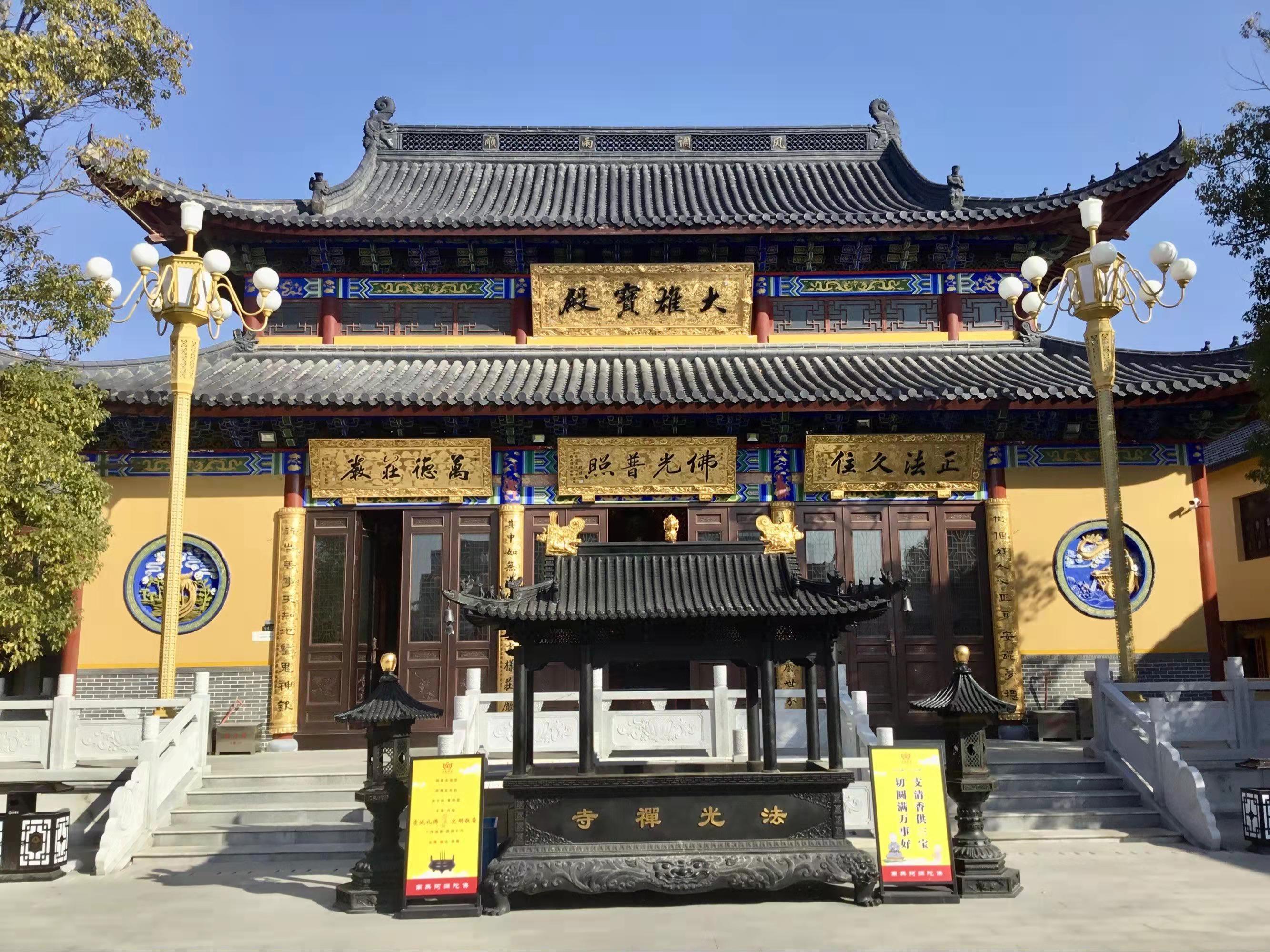 法光寺位于江苏海门市“凤城福地”余东镇,始建于明代万历年间(1573-1620),距今已有400多年的历史,是海门市境内唯一留存的明代古刹,历来香火旺盛。法光寺的前身原是一座道观--东岳庙,又称东皇庙。走进寺内,香烟缭绕,梵音不绝。