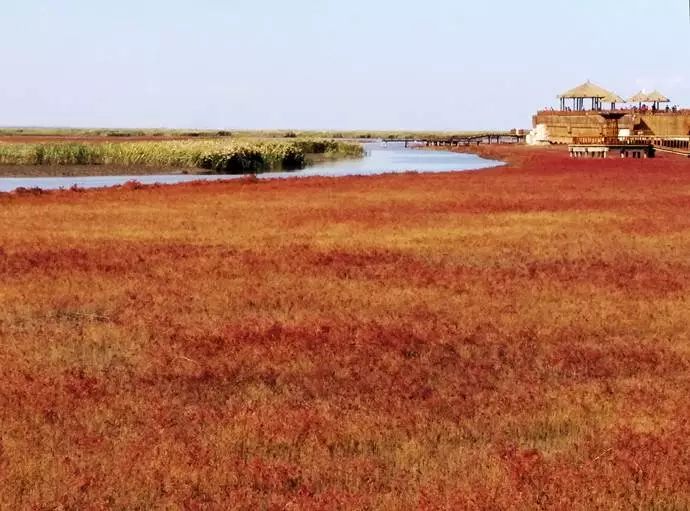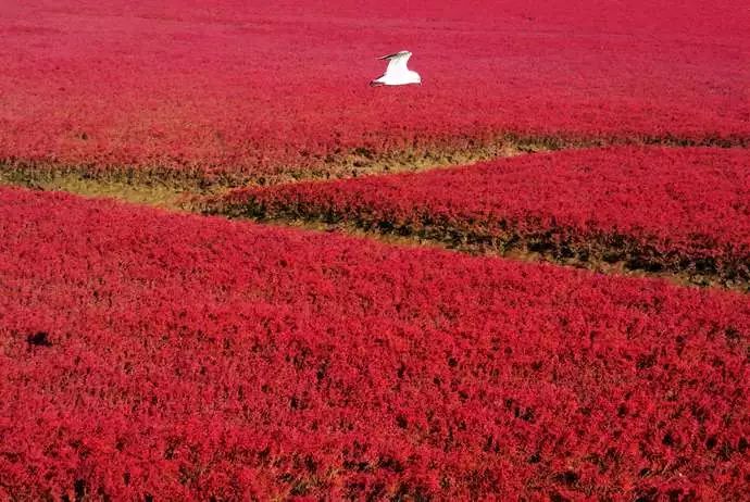 这举世罕见的红海滩,也因了全球保存最完好、规模最大的湿地,才交织出这般无穷魅力。自然的生态,湿润的土地,惹得草长,引来鸟飞,还有络绎不绝的观景人。
