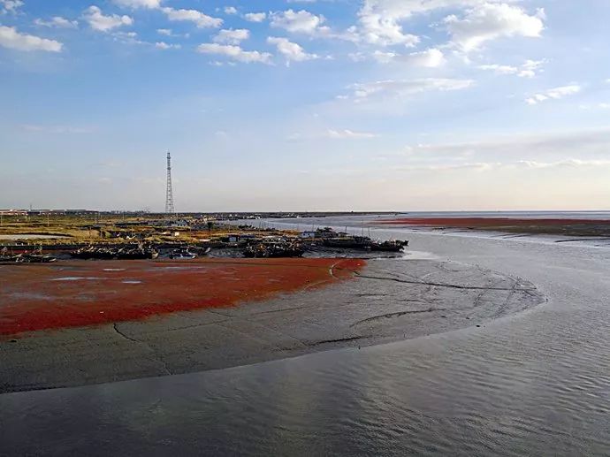 那红色是活的,随着滩涂的不断扩展而蔓延,一步步向海逼进……浩瀚的海水步步退让,笑纳了她的放肆,欣赏着她的美丽,也拥抱着这如火的热情——潮起时尽揽怀中,潮落时别情依依,让出水红颜点点显露,渐次铺展。