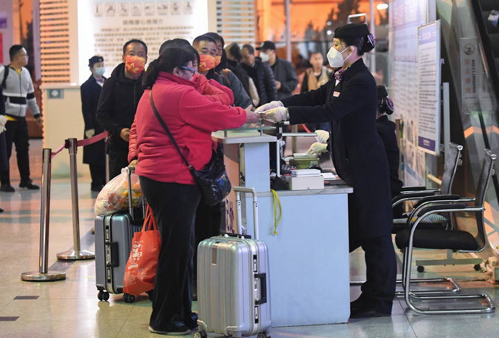 4月25日,在大连旅顺西站,中铁渤海轮渡公司的工作人员为旅客实名制登记。新华社记者 龙雷 摄