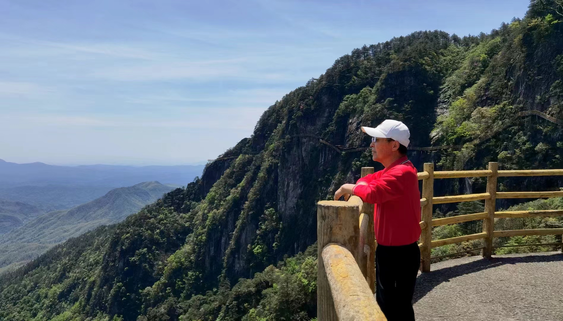 2009年建在这一千五百多米高处,环悬崖峭壁一周3.1公里的栈道。览群山之胜,眺峰峦叠翠,犹如仰天之飞龙驾云而去。漫步青云之上,山峦连绵蔚为壮观,松柏苍翠,山花点缀,俯瞰远望,感叹大自然之造化无穷的魅力,又赞叹建造这条栈道的人的审美之举。