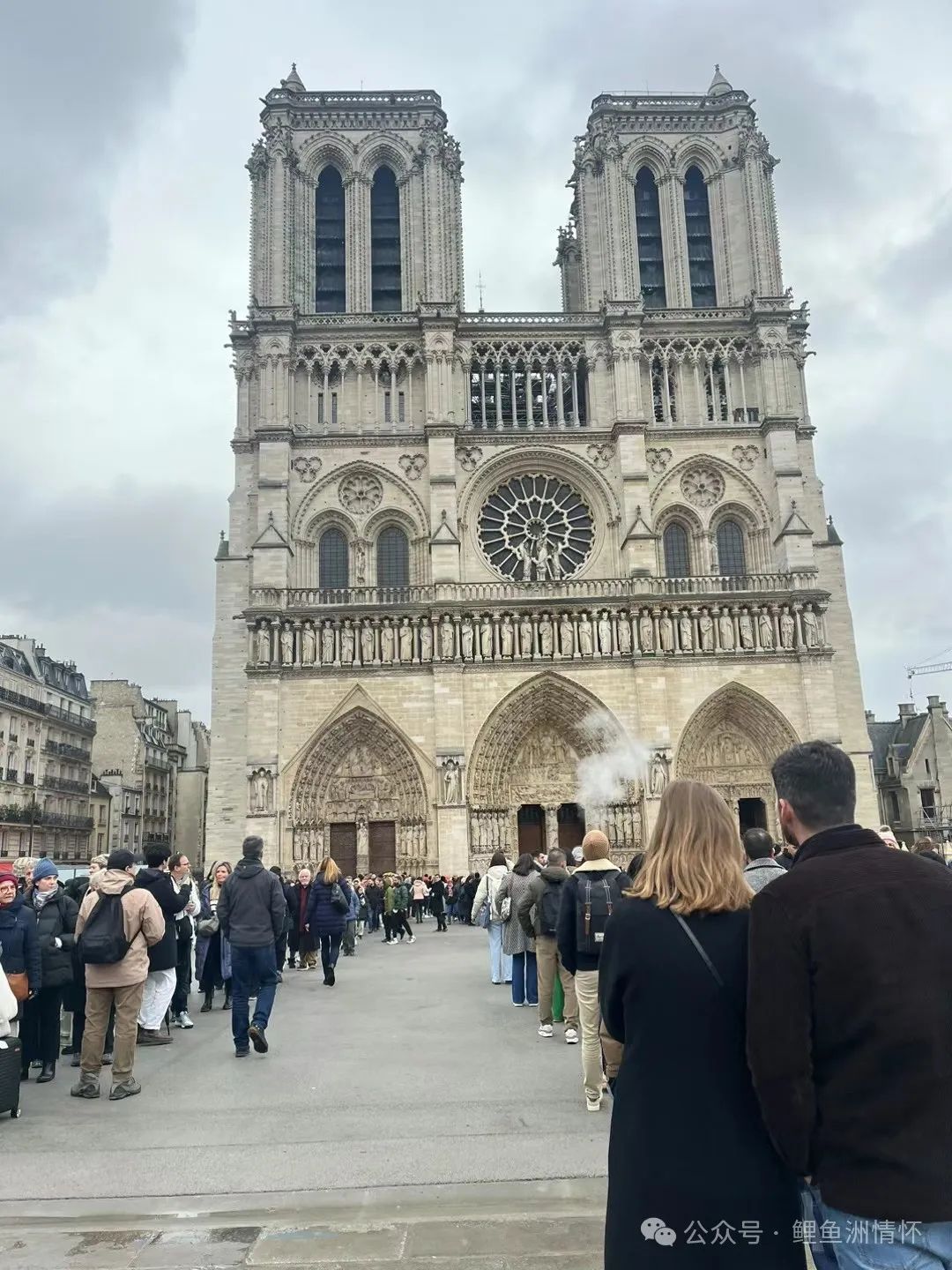 巴黎圣母院在2024年12月7日召开盛大开幕仪式,法国总统马克龙出席,并邀请了美国总统川普和其他的国家政要参加,巴黎圣母院其及周围全部戒严。我参加的法国巴黎-瑞士卢塞恩-意大利米兰、威尼斯、罗马、佛罗伦萨、梵蒂冈、摩纳哥的旅行团于12月6日散团,游伴南京电视台的记者、编辑、作家一帆先生(一帆先生知识渊博、见多识广、兴趣广泛、富有正义。我们的这个游程景点之间的路程较远,一般均有200-300里以上,我和一帆先生坐在一起,正好可以聊景观、聊艺术、聊历史、聊当今的方方面面,相谈甚欢)12月7日赶去巴黎圣母院,因戒严无奈不得进入,12月8日一帆先生已定机票要回国,留下遗憾,他特地告诉我,下次一定要重返欧洲,一定要来巴黎圣母院来参观。我12月7日已定去德国的巴士,8日开幕后,也无缘参观。昨天回到巴黎,今天赶紧去巴黎圣母院参观,一早已人山人海(照片2,世界各地的观众排队入场),法国政府为弘扬法兰西的文化遗产再创辉煌,决定让世界各地游客免费参观。法国巴黎圣母院的钟声再次响起。 历时5年多,这一久负盛名的世界文化遗产终于重新向公众开放。 法国总统马克龙表示,巴黎圣母院的修复为全世界带来“充满希望的震撼”。