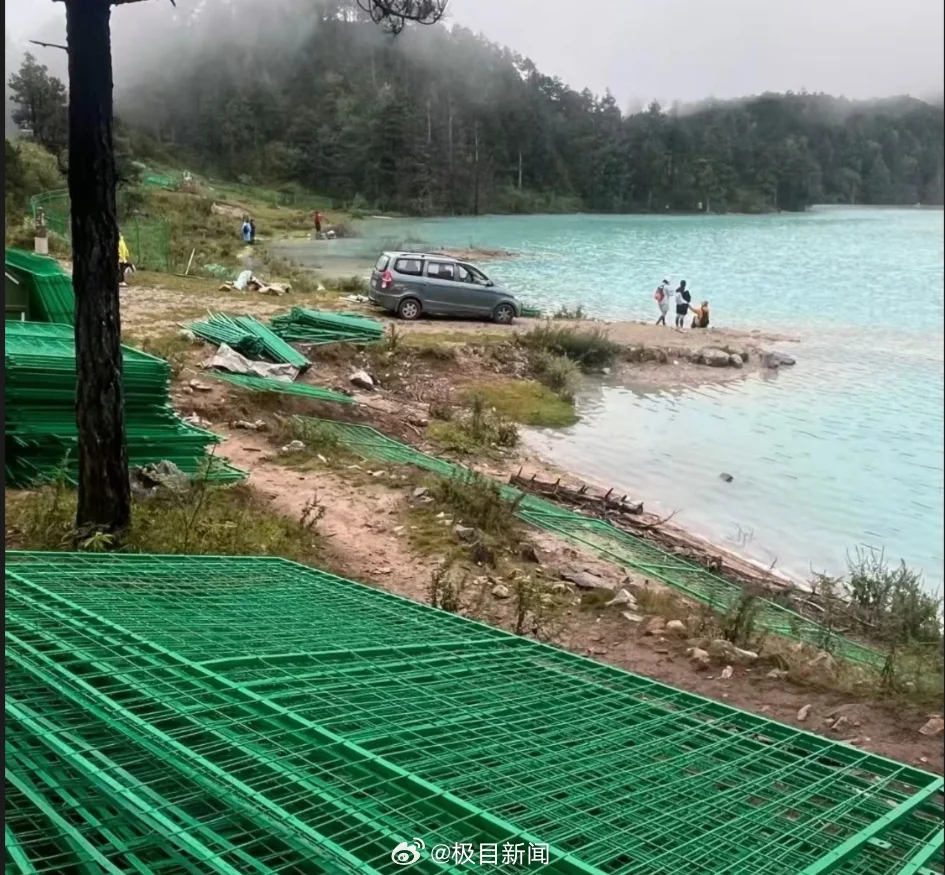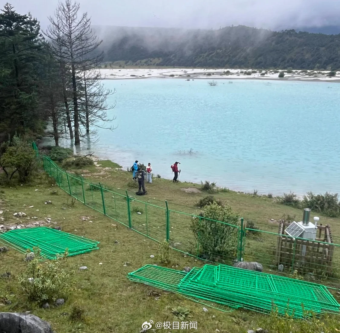 云南玉龙雪山牛奶湖岸边建起围栏,官方:属未开发区,不能擅入