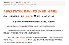 九寨沟风景名胜区管理局官网截图 据九寨沟风景名胜区管理局官网28日消息,九寨沟风景名胜区管理局发布《九寨沟景区关于部分区域对外开放(试运行)补充通告》,根据九寨沟景区灾后恢复重建推进和试运行情况,景区现对散客旅游开放。具体内容如下 1.为保障游...