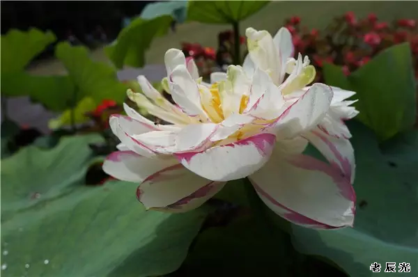 大洒锦有“玉蝶虎口”之称,是中国荷花传统的名品之一。花碗状,直径一般16厘米左右,即是复色荷花,又是重瓣荷花,十分难得。