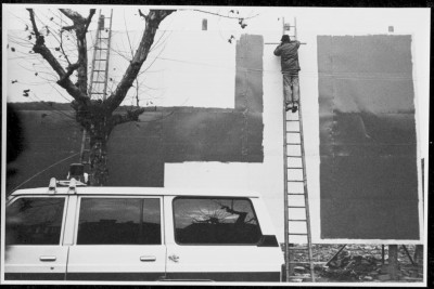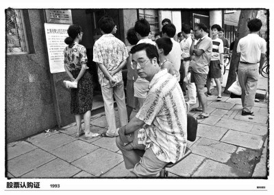 ![]() 王耀东1990年代拍摄的“收藏上海”系列07 1990年代,上海摄影伴随着城市的发展,表现出它的活力。首先,城市层出不穷的新事物和新现象,被具备“观看和表现冲动的”、能“最早感知和把握某种可能性”的摄影师从各个角度事无巨细地收入照相机镜头之中。他们的照片是这个城市现代化和社会转型最直接的证据。其次,他们的拍摄延续并发展了1980年代已经形成的“街头生活”、“抓拍摄影”、“现实主义”等一系列的类型和特征。这些现代主义的摄影语言和形式所反映的,是镜头背后的摄影师对于现代化进程的认识,以及探索适合这个城市摄影语言的努力。 其中,雍和可谓是有意识地记录上海城市变化的摄影师中表现最全面的一位。他是本地报社的一名摄影记者,这不仅让他拥有丰富的信息资源,同时也锻炼了他捕捉事件新闻价值、社会意义的敏锐感知和判断能力。他会在一天中接连去几个场合拍摄,也会长期追踪某些主题,或者反复回访一些对象。在对于不同主题的大量积累和同一事件的持续关注中,他的照片也更能体现一个社会的转型过程。他的工作方式并非像纪实摄影师那样,针对某一具体的事件和现象深入拍摄,形成一个独立的专题。作为新闻摄影师,他必须在各种制约中,用仅有的几张照片捕捉到最能代表那个时刻和事件的画面。雍和是以精准的捕捉见长的。他就像一个城市猎人,一个目力高超的狙击手,总是适时地出现在这个城市变化过程中的一些关键地方和时刻,不仅记录下一个个生动的现场,还构造出一幅幅充满喻意的画面。 比如雍和1993年拍摄的照片《股票认购证》。画面中间的男子穿花衬衫,戴金丝边眼镜,留“三七开”发型,面对镜头时流露出一丝疑惑和警惕的神情。股票认购证是上海证券市场建立初期因为股票供不应求而设计出来的产物,在当时深受追捧,也造就了第一批在股票市场上的致富者。但随着股票市场的电子化,认购证以及实物股票在短短三四年间就退出了历史舞台。这幅画面交待了当时股票认购现场的一个日常景象,主角也是一名平凡人物,但当我们今天再看这个画面时,男子疑惑警惕的眼神显得意味深长——或许是面对新兴证券市场时的盘算,或许是对于不可知未来的揣测。而认购证既是当时不断出台和变化的经济政策的见证,也是一种生活形态的缩影。在那十年中,上海人正是这样一次次迎接一夜之间出现的新事物和新现象,又在一瞬间与之告别。随着新事物的出现,人们疑惑、兴奋、投入、纠缠,甚至疯狂。从雍和的照片里,还可以看出对次要人物的处理方式,他们的表情、姿态,乃至明暗和与主体间的位置,都在帮助人们看到更为丰富的隐藏在事件表面之下的矛盾冲突和人物感受。雍和的新闻摄影已经超越了对新闻要素的简单追求,他将新闻摄影从事实真实推向影射和隐喻真实。此外,他更借助一些简短犀利的文字,呈现极速现代化进程中的城市百态和人情冷暖。 朱钟华对日常生活瞬间的捕捉也毫不逊色。他的照片中有一类是在街头日常杂乱的景观中寻觅到一些点、线、面的基本元素,并以此构造出一系列富有趣味的视觉小品。比如他拍摄的《街头广告》,巨型广告字的笔画、楼梯、汽车车窗和树枝,配合以黑白灰的不同影阶,组合成一张黑白抽象画。而在另一张颇具极简主义气息的作品《午日》中,画面右侧四分之三留给了大块的白色墙面,左侧上方的灯泡和左下角的光头被压缩在画面的狭小空间中,形成了形状上的相互呼应。门框、人和灯泡留下轮廓清晰的阴影,使得右侧墙面的白色特别刺目,很巧妙地表达出一种人眼的感受,就像注视着反射而来的夏日中午灼热的日光。朱钟华的这一系列视觉小品来源于他一再提到的对于现代艺术,特别是对于康定斯基的抽象绘画理论的兴趣,可以说是他利用摄影所展开的对于这些艺术风格和理论的实验。自1920、1930年代欧洲现代主义摄影开始,这种实验,或者说游戏,就已经逐渐发展为一种传统,并在同时代的上海(比如金石声),以及1980年代的“重新启动”中出现过类似的作品。 摄影的现代性并非仅仅指通过照片反映城市以及其中人物在现代化过程中的现实境遇,同时也指拍摄者本人所具备的现代意识,以及在画面中所反映出的现代主义美学。而另一位摄影师王耀东的创作,可以说是具备这种现代意识和美学的最典型代表。1980年代的街头摄影,1990年代的“收藏上海”和今天看来依然极其独特的时装摄影,乃至2000年初逐渐成型的“图像之像”系列,以及为新出现的文艺类报纸杂志所拍摄的“大片”,王耀东的作品始终贯穿着鲜明的上海现代主义摄影风格传统。 王耀东的“收藏上海”系列可以说是他1980年代街头摄影实践的延续,在其中的一部分作品中,他利用照相机描摹了城市建筑表面的细节。但是他所描绘的不仅仅是墙面图案和肌理等建筑元素本身,它们还被叠加了行道树、电线、残缺海报或痕迹,以及建筑结构本身所形成的交错光影,使得画面多了时间和情感的维度。在他另一部分作品中所抓取的城市街头的瞬间,也不仅仅是简单地描绘人或者物或者生活形态的事实,而是体现城市人的某种精神状态。就像那个在街头路灯下侧手翻的小孩子,我们可以想见孩子的活泼与可爱,但是他却像是被安排登上只有一束光的舞台,表演嘈杂城市生活背后的寂寥情绪。王耀