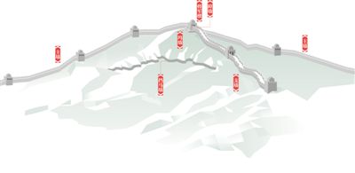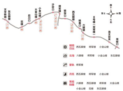 ![]() 障墙与敌楼。 周万萍摄。 ![]() 麒麟影壁。 周万萍摄。 ![]() 游客拍摄长城云海。 周万萍摄。 ![]() 金山岭长城防御工事示意图。 ![]() 金山岭景区提供的金山岭特色景观最佳拍摄点。 ![]()