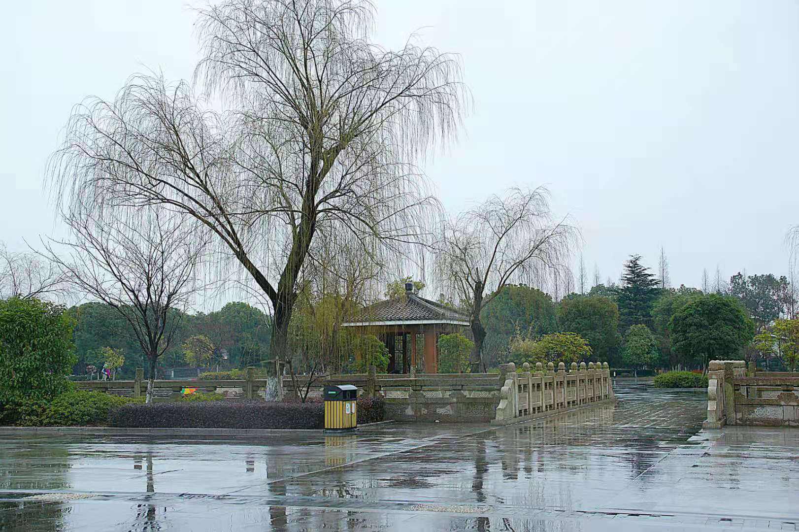 雨水 (二〇二一年二月十八日) 东风劲,春色染江南。细柳数枝芽乍出,繁花一片野已燃。微雨发边沾。