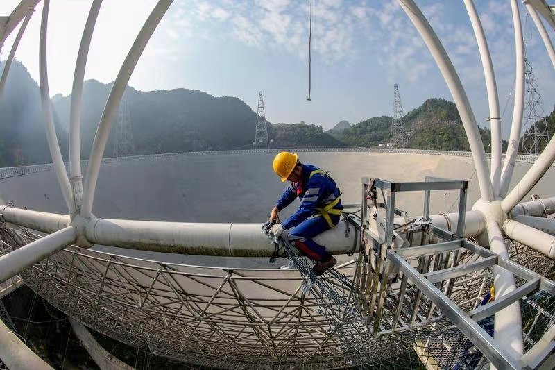 3月31日,FAST工程师展示提交观测申请。今天是“中国天眼”向世界开放的日子 新民晚报记者预约进入中国天眼科普基地与众多访客一起,见证最美丽的科学风景想“近距离”感受“中国天眼”第一站是贵州省黔南布依族苗族自治州平塘县航龙天文小镇 在天文小镇,眼前不时闪现出各种天文元素——公路两边的天文雕塑、墙上的巨幅星云彩绘、以天文为主题的博物馆……当地居民感叹,“中国天眼”不仅改变了中国在天文领域的国际地位,也深刻改变了他们的生活和经济状况。 在网上预约后,经过两道安检,便可乘坐经过特殊改装的车辆前往位于“中国天眼”东侧山顶上的观景台。安检前,参观者会被告知不允许携带任何有通讯功能的电子设备,即使只有拍照功能的数码相机也不行。这是因为电子设备可能会干扰FAST对来自宇宙微弱信号的接收。实际上,当年天文学家之所以将这里选为建设FAST的理想之地,就是考虑这儿远离居民区。 车程大约半个小时,看到窗外山的背后还是山,同车参观者感叹,很难想象这儿是当年那群年轻人寄托梦想的地方,那时这里连路都没有,更别提平整的水泥路了。没过十分钟,就有人感慨没有手机的不习惯,可FAST建设初期,因为缺乏网络信号,很多工程师都成了“世外高人”。 3月27日,工作人员在“中国天眼”总控室内工作 。 3月29日,工作人员对“中国天眼”圈梁进行维护。 ![]() 不少参观者都满怀敬意地提到了南仁东。为了“中国天眼”,这位“人民科学家”从选址、论证,到设计、建设,事事亲力亲为,一干就是22年。2017年9月15日,72岁的南仁东因病逝世,他生命中近三分之一的时光都奉献给了“中国天眼”。 登上观景台俯瞰“中国天眼”六座百米高的支撑塔耸立在群山环绕的洼坑边直径500米的银灰色“大锅”尽收眼底 晚霞中的“中国天眼”(维护保养期间拍摄) 。观景台上,也有人兴致勃勃地讨论起,FAST的建造是否会将人类和地球曝光于宇宙未知生命的威胁之下,一时间谁也说服不了谁。事实上,“中国天眼”有着异常灵敏的接受宇宙脉冲信号的功能,但并不会向宇宙发送关于地球的任何讯息,或者说,天眼就算接收到了某些信息,也不会与外界发生“对话”。它通过巡视宇宙中的中性氢和观测脉冲星,为研究宇宙物理学、探索宇宙起源提供科学根据,同时又通过研究宇宙物质结构和物理规律,为未来的宇宙探索提供坐标、指明方向。 值得一提的是,老式胶片相机成了观景台的“宠儿”。由于数码相机、手机等电子产品被禁止使用,胶片相机成了访客与FAST合影的唯一途径。访客可以选择由摄影师拍照,也可以自己携带胶片相机去拍摄,只要电池容量在允许的3毫安以下。 “在这儿,我们看到了自然的原始和科技的结合,不虚此行!”在下山路上,有访客如是说。 3月31日清晨拍摄的“中国天眼”(维护保养期间拍摄,无人机照片)。 ![]() |