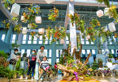 深圳展馆以垂吊的植物营造“森林”“建筑”“花卉”的多层次空间。