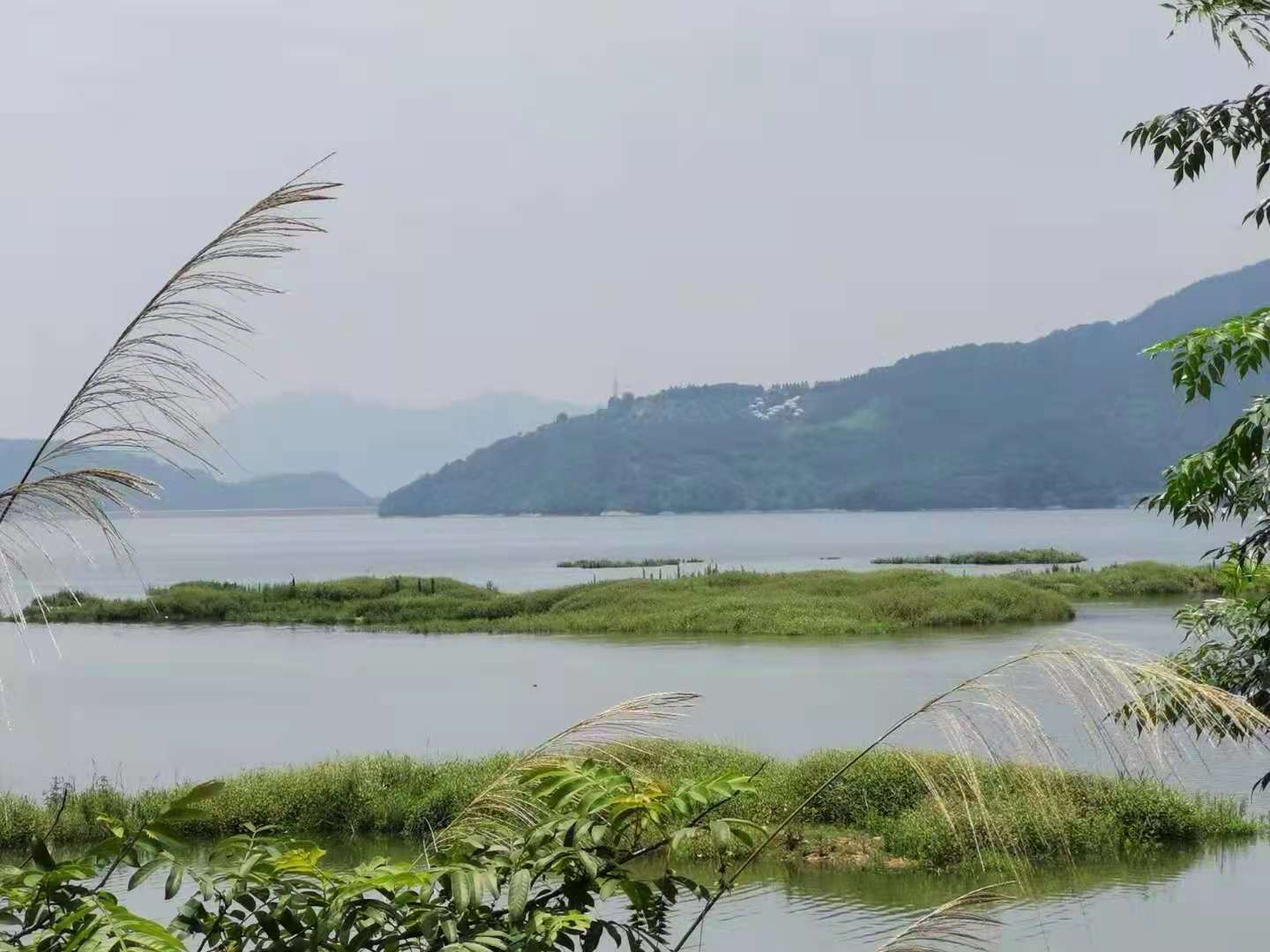 四明湖水草丰满,四明山山清水秀,倘徉在湖光山色中,心情分外宁静,愉快。