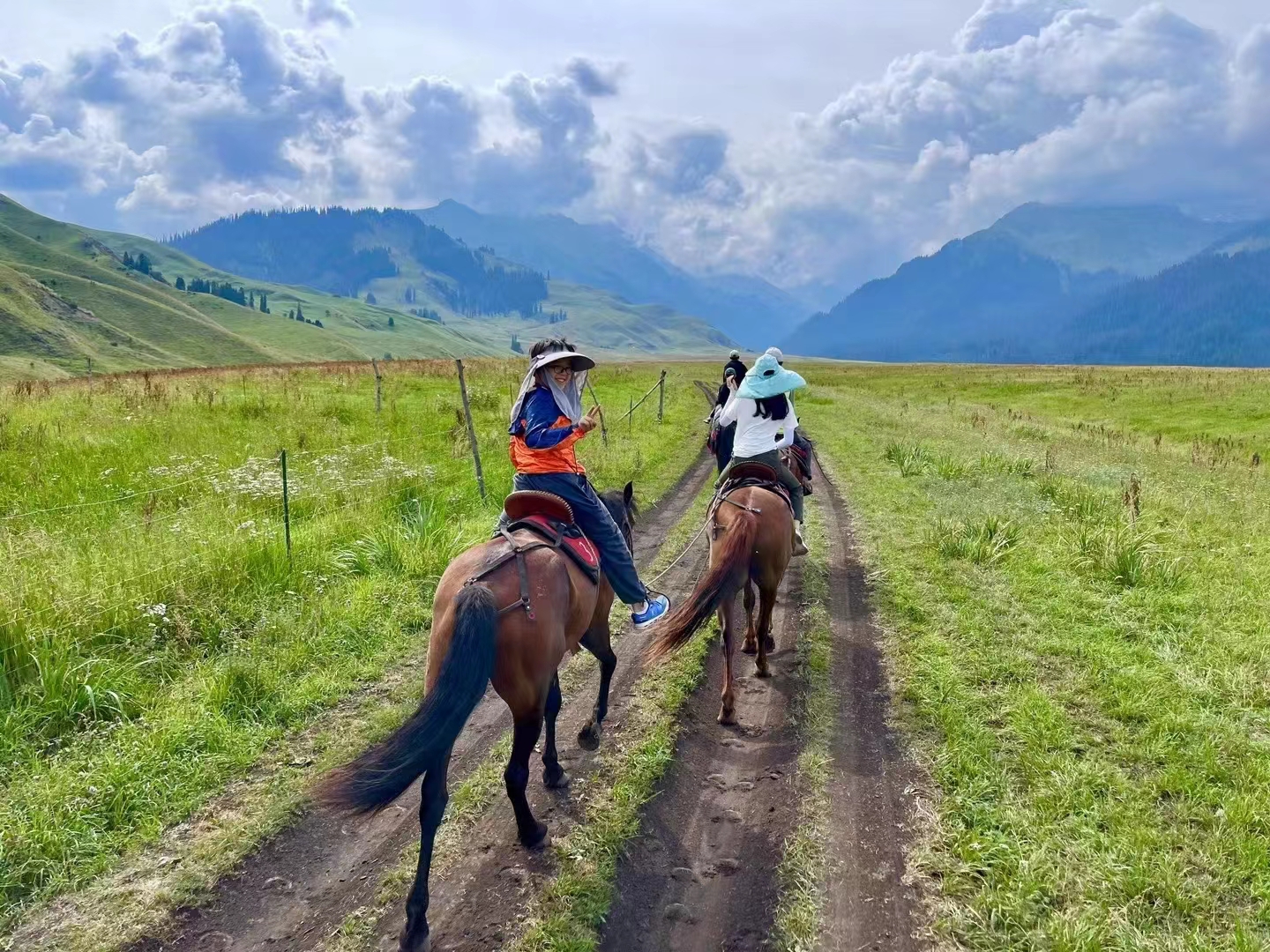 新疆恰西森林草原,清晨感受到了扑面而来的清新空气,太适合骑马了。于是,12匹马队浩浩荡荡出发了~