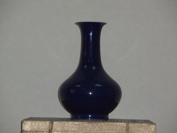 乾隆祭蓝釉赏瓶高32.5公分,口径11公分,蓝釉发色深沉凝重,滋润肥厚,有橘皮纹,灯草口明显,除口沿处色浅淡外,整体釉色均匀,器型规整。底部施白釉有明显旋纹痕,内壁白釉与底釉相同,白中略带青色,见缩釉点,釉胎结合紧密,在结合处显一道白色线,胎骨质密,但稍逊康雍时期,底足有浅淡火石红。赏瓶雍正时期创造,因作为赏赐大臣官僚而得名,直到清末一直沿用,器型少有变化。 (责任编辑:晓歌) |
