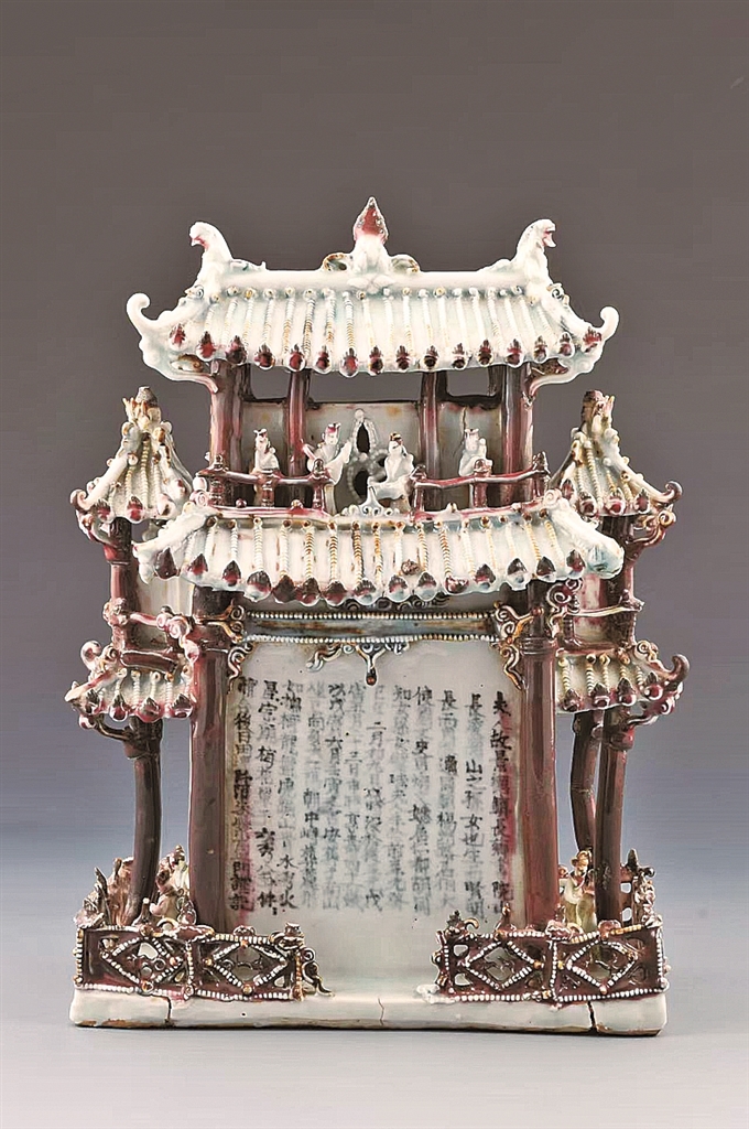 谷仓采用楼阁式重檐庑殿顶设计,分为两层:上为戏台,下为谷仓,戏台及谷仓门廊共雕塑人物18个。舞俑水袖翩跹,乐俑或抚琴弄箫,或弹奏柳琴、腰鼓等乐器,侍卫与仆役俑各司其职,生动展现出当时的市井图景。戏台人物的塑造尤为精妙,从衣袂褶皱到神情姿态,每一处都惟妙惟肖,让人得以窥见元代的勾栏瓦肆。 元代在江西设浮梁瓷局,专掌宫廷官府瓷器督造,同时革新制瓷工艺,促进了元青花、釉里红、铜红釉、钴蓝釉等新品种的诞生,是中国瓷业史上的辉煌篇章。“谷仓集青白釉、红釉、青花、釉里红四种高温釉彩于一器,上承宋代景德镇青白釉传统,色调清澈高雅,还完美融合了元代高温釉彩新品种。”江西省博物馆副研究馆员钟洪香介绍,“在同一器物上精准控制两种颜料的发色温度与气氛,很不容易,稍有不慎便会出现发色不均、釉面开裂等问题,因此它堪称元代制瓷工艺的巅峰之作。” 正大门两侧的楷书七言对联“禾黍丰而仓廪实,子孙盛而福禄崇”,横批“南山宝象庄五谷之仓”,凝结着美好期许。两侧壁书“凌氏墓用”“五谷仓所”和器物背面159字墓志,清晰揭示了墓主人凌氏的生平往事。她是景德镇长芗书院山长凌颖山的孙女,嫁与扬州路召伯大使刘文史为妻,享年46岁。凌氏去世后,家人将其安葬于南山,这件谷仓便是特意定制的陪葬“明器”。 凌氏家族“禾黍丰而仓廪实,子孙盛而福禄崇”的期许,也道出了古今相通的人间理想:粮食丰收,仓库充实,子孙兴旺,福禄双全。时代变了,人们对衣食丰足与美好生活的向往,始终如一。 责任编辑:日升 |