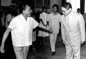 连载:废约 中英香港问题谈判始末(十四) ——邓小平轮番会见香港人士“做工作” ![]() 邓小平会见金庸。 14.时机到了 希思问:“中国是准备1997年收回香港吗?”邓小平回答说:“如果中国那时不把香港收回来,我们这些人谁也交不了账!” 让希思捎信回去:时机到了 希思说:“这个问题条约里写得很清楚呀。”邓小平反驳说:“新界的租借,香港岛、九龙半岛的割让,是过去不平等条约定的,现在实际上是废除条约的问题。无论将来香港的政治地位如何,香港的经济现状都会保持不变,投资者大可放心。我相信,只要香港有钱赚,逃走的钱还会回来。我还相信,大部分人是有远见的。” 希思说:“邓先生,我本人很相信你的话,但是香港人期望有一些更具体的东西,比如中英双方的协议。”邓小平深知希思此行的任务,也愿意给老朋友访问有收获,就说:“如果可能,我们愿意同英国政府正式接触,通过谈判来解决香港问题。1974年我们见面时,我对你说过香港问题将在适当的时机解决。现在这个时机到了。一个是我们有办经济特区的经验,一个是我们有逐渐好转的国际关系。我完全同意你的看法。希思先生,现在是考虑香港问题的时候了!”这是希思先生第五次访华,邓小平给了老朋友面子,让他给撒切尔夫人捎信息:时机到了,可以通过谈判来解决香港问题了。 先后会见12批香港各界代表 1982年3月间,解决香港问题的特殊政策“十二条”已经基本成型但尚未公布,香港居民存在着各种问题,特别是“怕”的问题。经过调查摸底,相当一部分香港人,尤其是大商家、大实业家及中产阶层是“怕”的主要人群,原因是:1.“怕赤化”,即香港搞社会主义;2.“怕变天”,说了不算,开明的邓小平已高龄,以后邓公不在怎么办?3.“怕搞政治运动”;4.“怕失去自由”。更有一些港人说,对中国收回香港后能不能管好香港,“心里没有底”。 从3月后,邓小平在廖承志的陪同下,会见了12批到京访问的香港各界代表。有工商实业家、大中学校长、工会领袖等,也包括香港地区的全国人大代表和政协委员。邓小平开始亲自对香港各界人士“做工作”。由于“十二条”特殊政策是在1979年以来的大量调查研究的基础上产生的,代表了十亿中国人民根本利益的决策与政策,邓小平也以老政治家的智慧深思熟虑,在向香港各界人士介绍“十二条”特殊政策时,“吹风”和“做工作”的既定方针是:一是“不讨论”。1997年收回香港主权不可改变,不容讨论。准备解决香港问题就像解决台湾问题一样,要准备“两只手”。邓小平引用毛主席1973年对基辛格说的话,“解决台湾问题就是两只手,两种方式都不能排除。用右手争取和平的方式,用右手用力量大一点;实在不行,还得用左手,即军事手段。我们在这方面不可能有什么灵活性。”二是重点阐释“怎么办”。主要就我们实行“一个国家、两种制度”的香港特殊政策征求各方面意见,认真倾听港人民意心声,共商如何保持香港的稳定与繁荣,让这个自由港发挥它的作用。 “我们不来如来神掌” 邓小平在与香港人士会见中反复强调:“我们的十六字方针:‘收回主权,制度不变,港人治港,保持繁荣’,我讲了多次;香港的‘几个不变’(现行社会、经济制度不变,生活方式、福利制度不变,港币不变,原有的法律、法令、条例基本不变),我讲了多次,写进了赵总理的政府工作报告,全国人大通过的,是国家的政策。”有人说:“‘文化大革命’的事,还怕再发生。”邓小平回答说:“都过去了,我主持写了《建国以来若干历史问题的决议》,否定了‘文化大革命’!”有人忧虑“香港跳不出如来佛神掌”,中国收回香港之后,“事事出主意,分分钟发指示”。邓小平说:“我们不来如来神掌,不派大员到香港,也不事事向香港发指示,回归后给香港高度自治权,港人治港,让香港同胞自己管理香港。” 邓小平会见香港工商界人士查济民,介绍说:“在1997年收回香港,这件事已经定了。一切文章都在这个前提下做。现在,主要是研究这个文章怎么做的问题。”查济民对香港人自己管理很热心,建议说:“香港百年来都是在英国人统治下,香港人没有机会参政,香港回归后,培养管理香港的人才是个很大的问题。”为此,查先生提了一些建议。邓小平认为,查先生所提培养香港管理人才的建议很重要。邓小平还会见了香港文化名人金庸。金庸就是查良镛,是查济民的兄弟。早在1981年间,金庸就在《明报》上发表了《关于香港未来的一个建议》的社评,所提建议有三点:“一、香港是中国的领土;二、香港的现状不变;三、中国如决定收回香港,应在 15年之前通知英国。”这是当时香港中英各界人士对香港前途的种种预测之中,最早、最准确的一次。看来,邓小平与金庸两人早就是知音。邓小平落难在南昌时,就爱看金庸的小说,当他从江西迁回北京时托人从香港买了一套金庸小说。这次两人在北京会见,交谈很广很愉快。金庸回到香港,就将一套金庸小说全集送给了邓小平。 “不合作,就提前出兵收回” 6月15日,会见香港地区的全国人大代表和政协委员费彝民、王宽诚、汤秉达等时,邓小平说了段意味深长的话:“我对收回香港主权有一个问题始终未能解决,中国收回香港主权有一个前提,就是必须取得英国人的合作,假如英国人不合作,那怎么办?我们的方案中有一条是说要充分照顾英国人的利益,换取英国