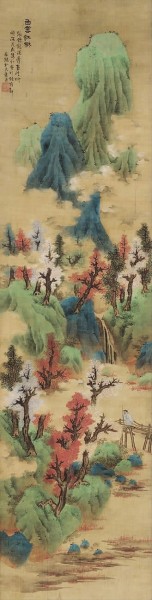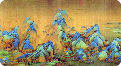 ▲王希孟《千里江山图》局部,“千里江山———历代青绿山水画特展”展品