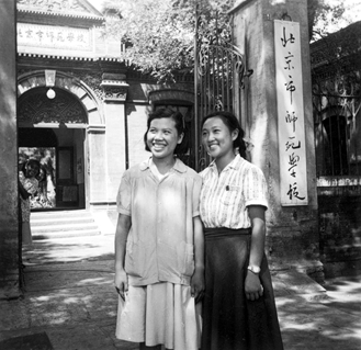 北京师范学校毕业时,我与同学赵素勤在学校大门口留影
