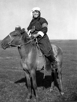 秉建在内蒙古草原上熟练地骑马