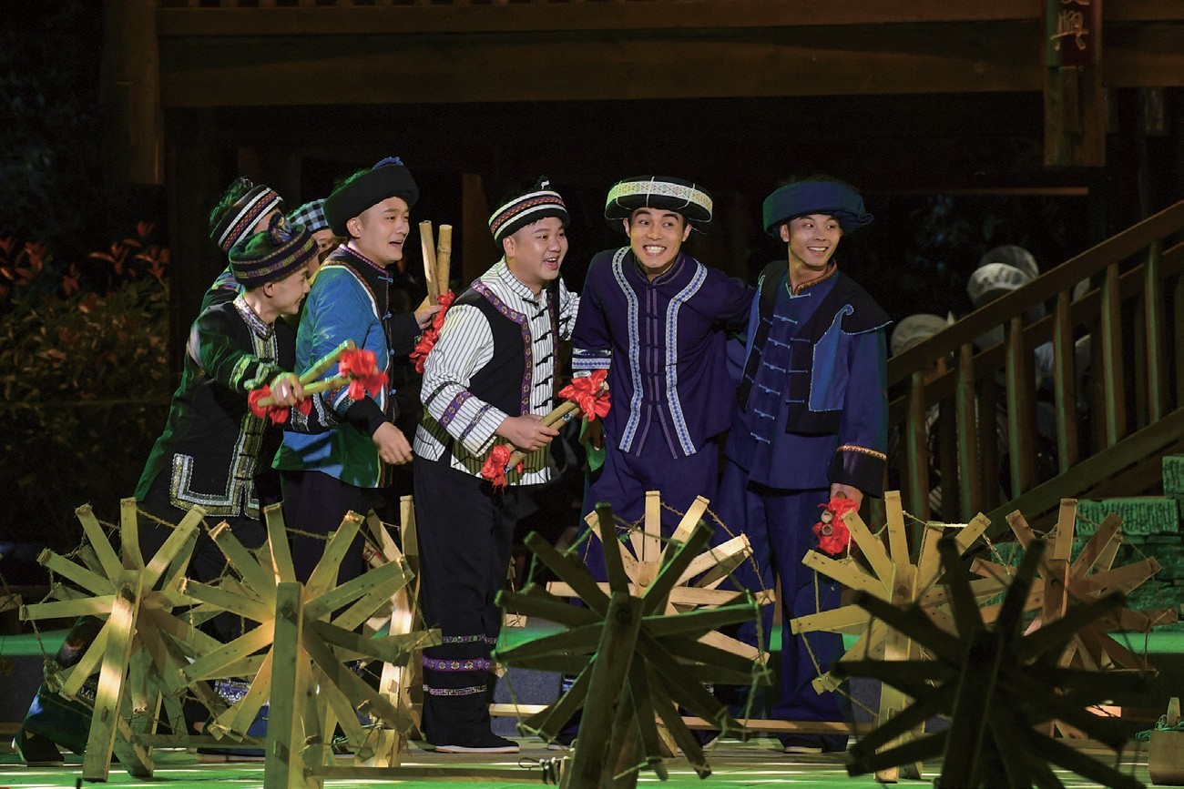 2019年10月29日,在贵州省黔西南布依族苗族自治州,当地少数民族村民正在表演传统节目——布依族“浪哨”对歌,身着布依族盛装的歌手用歌声来表达对美好生活的向往。