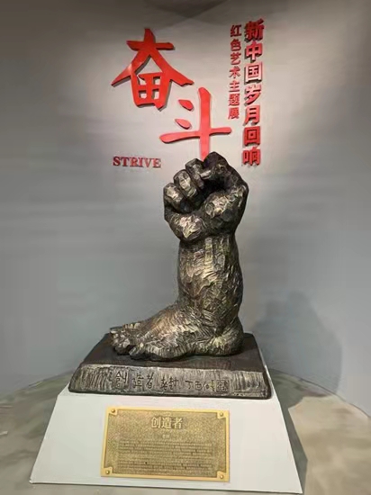 ![]() 展览汇集近百位艺术家的百幅经典作品,分为“奋斗之艰”“奋斗之歌”“奋斗之美”“奋斗之勇”四个篇章,是不同时代美术工作者的写实之作。作品中,有对革命年代的再现,有对各行各业劳动者形象的刻画,也有对日新月异新中国的描绘,具有历史和艺术双重价值,让经典作品成为鲜活生动的艺术教材。 跨界出人意料 曾经以“老树画画”一袭长衫白帽的人物造型在微博上风靡一时的刘树勇,这次跨界探索以一件雕塑作品参展——脚踏实地的足与握成拳的手,连成一体,遒劲有力,近一个人高,作为整个展览的起始,恰如其分地诠释了此次展览的主题:奋斗。这个雕塑根据老树30余年前的绘画手稿所作,紧握的拳头象征着共产党人庄严誓言,那坚实有力的脚象征着共产党人“心中有阳光,脚下有力量”,脚手相连的造型表达了创造者肩负的重担,创造之路并不轻松,创造者将赓续奋斗。 展览的总策展人、新媒体艺术家金江波创作的是一幅书法作品“三牛颂”——“创新发展拓荒牛”“卓越奋斗老黄牛”“俯首甘为孺子牛”,勾勒出了传统文化中对于“牛”的品格定义。金江波表示:“结合多种展陈方式还原历史场景,营造沉浸式体验,既是通过红色主题艺术作品打造学习党史的课堂,同时也承载着美育育人的重要功能。” 展示颇费巧思 展品中有不少名家作品难得一见。例如陈逸飞、蔡江白合作于1978年的《只要主义真》,构成了展览中不可忽视的一个片段。这是其三联油画《刑场上的婚礼》组画之三,描写的是1927年广州工人运动的主要负责人周文雍与陈铁军假扮夫妻,双双被捕入狱,面对敌人的枪口从容就义的故事。画中的周文雍和陈铁军深情相拥,周文雍低头凝视的眼神沉着;而陈铁军仰头凝望的眼中充满了泪水,是从容也是无悔的。整幅构图用仰视的角度来刻画崇高而修长的人像,在背景落日的不同层次的黄色渲染中更显得人物表情的空灵,对于死亡的从容和永生的象征在画面中表现得淋漓尽致。脚边摇曳的野菊花,也代表着沉默的爱情。两位艺术家人性化地表达了刑场上的爱情,充分展示了中国共产党人的革命英雄主义与革命浪漫主义相结合的精神风采。 ![]() 油画家颜文樑在上世纪50年代的作品《上海中苏友好大厦落成》尺幅只有21.5×30厘米,但气势恢宏,在殷红、橙黄、银白三色调中,辉映出新建的中苏友好大厦雄伟壮丽的形象,严谨的透视构筑出大型宫殿的稳健和气派。且这幅作品衬在一个巨大的外框之内,占据了整整一面墙的位置,展陈方式新颖而现代,作品虽小,却令人无法忽视。 电影回味无穷 在楼梯转角处一个不起眼的角落里,门口的小黑板上一半贴着老电影招贴画,一半用粉笔写有排片表——六部老电影《地道战》《刑场上的婚礼》《董存瑞》《霓虹灯下的哨兵》《平原游击队》《白毛女》每天都会轮流放映。放映空间里,有几排长条木凳和一个老式的轮盘胶片电影放映机,影像是投影在白墙上的。因为有了电影的播放,让观众观展体验立刻丰富了起来。 展厅入口处,两个有着拱形分割的空间——“红潮供销社”,特别推出“百年百杯”“信仰的味道”等系列文创衍生品,立足当下审美,将奋斗精神融入当代人精神生活场景。承办方在画展策展前期就成功举办了“红星照我心”红色主题故事演讲展示活动,展览开幕后,将从演讲活动中选拔优秀学员进行培训指导,作为本次展览的特别讲解员。(新民晚报记者 徐翌晟) (本文来自企鹅号) (责任编辑:晓歌) |