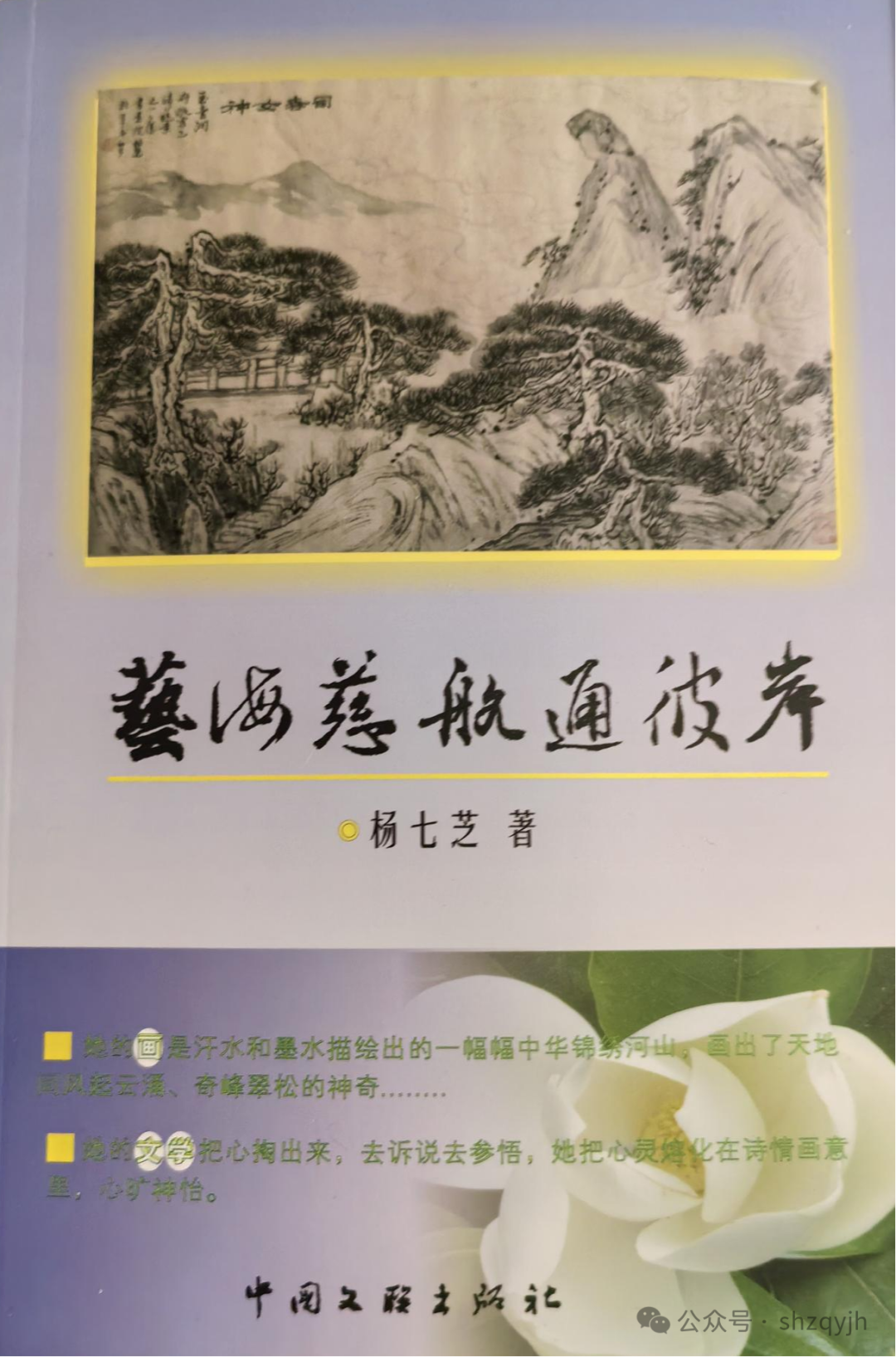 ![]() 浩瀚的中华文化典籍中向来不乏以“奇”名世的女子。远的如《晋书》中的绿珠,唐人传奇《虬髯客传》《李娃传》《无双传》《莺莺传》《霍小玉传》中的红拂、李娃、无双、崔莺莺、霍小玉以及明代白话小说《警世通言》中的风尘女子杜十娘,孔尚任的《桃花扇》中的李香君、柳如是等,其人物形象不仅明丽动人,且皆具侠肝义胆。其她如班婕妤、谢道韫、李清照均以才华横溢而名于世。至于曹雪芹、蒲松龄的传世名作《红楼梦》及《聊斋》之中,此类女性更比比皆是。逮至近代如慷慨赴义、喋血古轩亭口的秋瑾,替父报仇刺杀孙传芳的施剑翘,今世的张志新等皆可归入其列。时下更被热道的那位亡国之君孟昶的花蕊夫人,彼当也属此列。“花蕊”存世的明志诗:“君王城上竖降旗,妾在深宫哪得知。十四万人齐解甲,宁无一个是男儿!”,使其青史留名,成为千古佳话。 本书作者杨七芝出生于书香门第,世代仕宦之家,祖居越中名郡——绍兴东关。其先祖乃中国历史上最具显赫地位,享有“四世三公”之称的东汉太尉杨震家族,且以“四知堂”的故事流芳百世。晋末,杨氏一族历经“八王之乱”“永嘉之乱”和“五胡乱华”,于“晋室东渡”时,迁徙至富饶而秀丽的山阴。其间王羲之、谢安、谢万、孙绰、李充、许珣、支遁等一批著名的文人学士也都在山阴定居,由此奠定了山阴成为江南文化中心的基础。《晋书·王导传》记载了这一事实:“洛京倾覆,中州士女,避乱江左者十六七。” 作者的父亲,字志翔,号归岫,其书斋名“晚香楼”,亦越中名士,满腹经纶,学富五车,尤以诗书称绝。民国年间曾任浙江省银行行长,在任期间关注民生,扶植农桑,曾积极放贷支持当地乡村广种蜜桔,改善地方经济,颇得颂声。至今黄岩蜜桔仍蜚声中外,然其父之功不可没,则鲜有人知也。作者的母亲亦杭州之大家闺秀,知书识礼,治家有方,堪为一传统之贤妻良母也。 可以想见,作者生长于这一山水人文环境之中,幼承庭训,颇得风气之先,聪敏早慧也在情理之中。 作者于绘画、写作、乐理方面的才情禀赋很早即已显露。可惜“十年浩劫”中断了千万学子的学业,改变了他们的人生命运。本来已经考入美校并可以继续深造,却被荒唐地宣布作废。继而又因能够吹得一手出色的横笛,上海的一家大型国企希望她留下。但,和那个时代的许多热血青年一样,她怀抱理想而奔赴黑龙江的军垦农场,在冰天雪地中“强其筋骨,苦其心志”。艰苦的生活给她日后的绘画和写作提供了深厚的积累,但现实中的种种丑恶现象却又让她心中理想的火花屡遭破灭。重病缠身的她不得不投奔姐姐所在之地的江西三清山农林场。然而,或许是“造化弄人”,或许是应了古人 “文章憎命达” 的那句话,到三清山后,她的命运并没有多大的改变,而是屡遭事业、爱情、婚姻的大波大折。期间,小人的诬陷以及遇人不淑,致使身心俱疲、万念俱灰的她一心想出家为尼,把那韶华打灭,觅那清淡天和。为此她求助于苏州灵岩寺的了生法师,希冀从此“独卧青灯古佛旁”“缁衣顿改昔年妆”,于佛门中了此一生。也曾想将一缕芳魂付与三清山的绿水青山,以践“质本洁来还洁去”的素志。 然而,也许是上天垂怜,冥冥之中早有安排,1983年,她拖着疲病交加的身体和深受重创的心灵与她习画的老师一起登上三清山。恰逢元宵灯会,是夜,山色空濛,月朗星辉,人流如织,灯影如画,道教圣山的庄严妙相和世俗人间的韵致风流构成了一幅无比美妙的图画。期间,她偶遇一位隐居三清山的文士,也就是她后来的丈夫——刘鹏飞。刘老赠她一诗:“君本蓬莱青云客,只因贬谪人间来。艺海慈航通彼岸,金风相送到瑶台。”并告诉她:“欲治病,先治心,心定神自安;心美,好画生。” ![]() 我和杨七芝的相识纯属偶然,盖源起于我在杂志上曾经发表过的一篇散文《马灯的记忆》。初时通过电话短信往来,我只知道她曾经有过下乡的经历。看了她的画册以及报刊、电视台的介绍,我才知道,她还是一位山水画家。女子作画多以花鸟虫鱼或工笔仕女为主,其间亦有能作青绿山水画者,然皆凤毛麟角也。而杨七芝却专攻山水,尤擅长于巨幅长卷,其笔势飞扬跋扈、酣畅淋漓,如风驰云奔,电闪雷迸。
