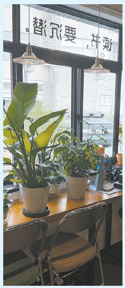 沉潜书屋长宁店一角,窗户上贴着“读书,要沉潜”。