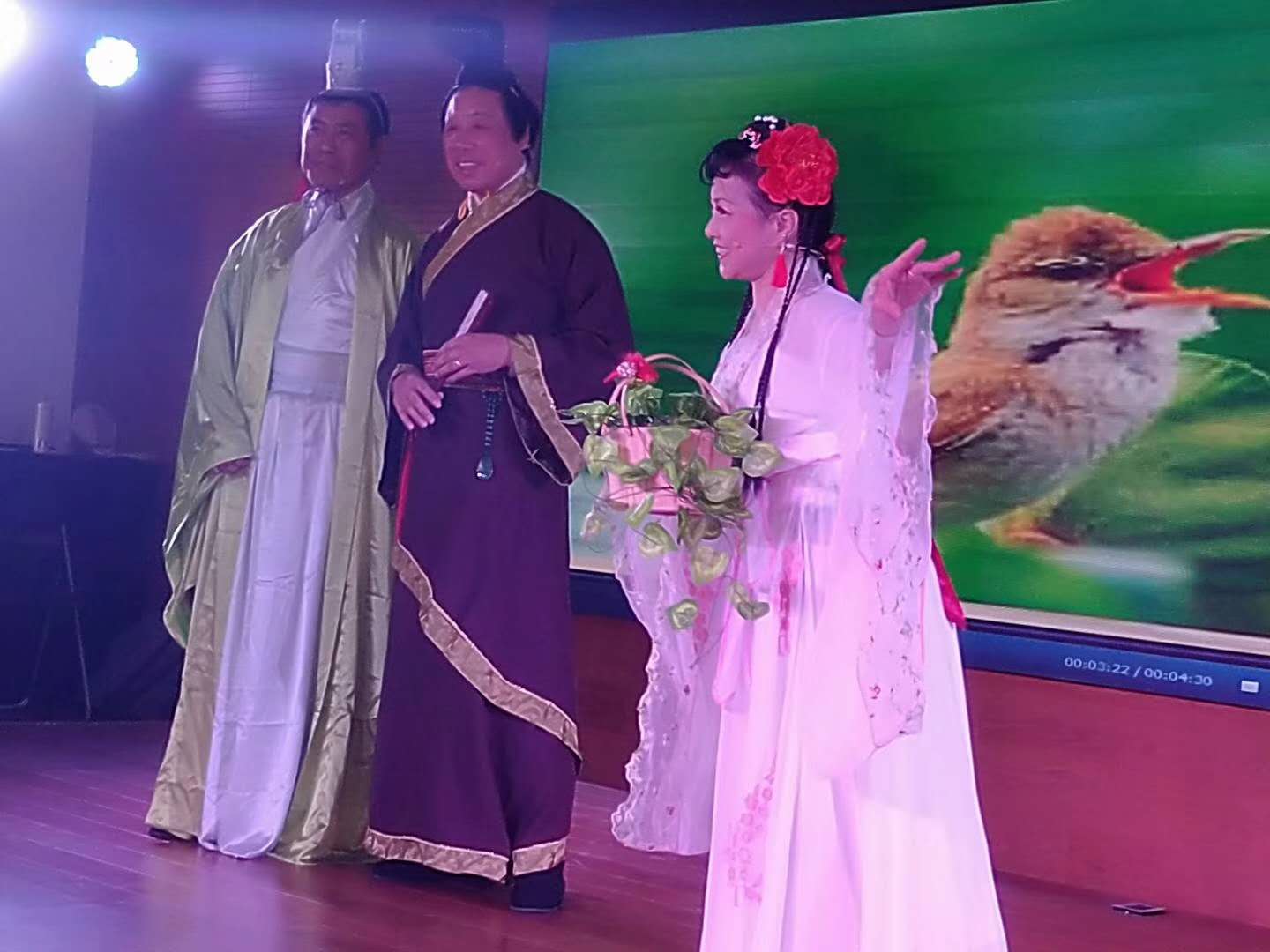 又是一场小剧场的演出圆满的结束了,心里还是不平静。沉淀了3天,还是按捺不住要写两句,写惯了,不写难受,码字有瘾,瘾君子。那精彩,那面容,那舞姿,依然历历在目······ 那旋律,那歌声,那神态,还盘旋在脑海,绕梁三日······ 9月,中秋刚刚月圆又临近国庆,茱萸瑶草又重阳,这丰富多彩五花秋色啊,节日都赶大集一样奔来。 先是那日“玲玲”台风爆狂,风雨交加中,演员们冒着暴雨赶到了浦南文化馆,与浦南文化馆的朗诵沙龙朗友合作,共同倾情奉献一台原创诗歌朗诵会,首次合作,新朋好友,大家都开心呢,“玲玲”带来 的亲情。 一转眼,金风送爽天转凉 新朋旧友聚一堂 中秋刚过又相逢 国庆过去是重阳 有声乐,有舞蹈 有戏曲,这是一场迎接国庆,欢度中秋节的演出。 70年前,中华人民共和国成立在中国共产党带领下,在自强、自立的过程中,共产党领导中国人民乱云飞渡,30年流血牺牲前仆后继;30年的经济复苏,40年的改革开放,一步步走向新天地,新中国70年来翻天覆地巨变,人民已经是幸福小康。 ![]() 70年来,国家富强、民族振兴、人民幸福、社会和谐,红色政权来之不易,新中国来之不易,中国特色社会主义来之不易。不忘来时路,永葆赤子心。感恩共产党为中国人民谋幸福,为中华民族谋复兴,因此,我们要歌之 舞之,纪念新中国建国70周年。 礼赞流金新中国,是我们这一篇章的主题。6个剧种展风采 美轮美奂全原装 诗歌咏颂五千年 一场演出真难忘。 《八仙献礼》旁白由茅耘老师临场开篇。带有默剧性质的八仙先后出现在众人面前,8个人8个面具8种神态,不仅是观众开心,演员也乐在其中,轻松诙谐快乐幸福,开场很不错。 三人舞《共和国之恋》张蝶芳 子钰 两位美女是剧社的台柱子。桂成钢男生,当年是毛泽东思想宣传队的台柱子,刚刚从国外回来第二天,就上场了,翩翩的舞姿,出乎意料,叫好声不断。 胶州秧歌民族舞,是来自北外滩的舞者首次亮相的4位妹子表演的,对于一古典舞著称的剧社,是一缕朴实泼辣的山东民风吹来。 ![]() 欢快轻松的新疆舞麦西来普是新疆的民族文化遗产。舞者文亚军,是疆二代,搭档华生吉老师是热衷于普及麦西来普的上海黑龙江知青,退休在佳木斯市委宣传部领导干部,他们为普及麦西来普做出了积极的贡献。华生吉的腰扭了不敢动,为了演出,硬挺着上舞台,观众硬是没有看出来,下来就是满头大汗。 独舞《红高粱·九儿》,舞者秦小红退休前是兰州军区某部的芭蕾舞演员。这个舞蹈,前不久刚刚获得了一个比赛的金奖。不到1分半的时间里,她展示了翻身、旋转等形体高难度的技巧,看似简单,实则童子功。 张蝶芳古典舞队的微舞剧 《隐蔽的战线》是发生在30年代的上海,一群弄堂里的美丽旗袍女子,掩护中共地下工作者的小故事。编导李爱云下足了功夫,加进了桂成钢和方解两位男生的接头情节,使得小微舞剧,一下子就提升了高度 。 ![]() 红叶红了,菊花黄了。这重阳节的主题就是:重阳好酒菊香透。 我们是用中国的文化遗产的菊花来酿酒!有京剧、评剧、越剧、黄梅戏、话剧等6个剧种,这些,是剧社的拿手好戏。最好的演员,最好的戏曲唱段,最精彩的节目,不用到处去拉人。徐敏和邓诗祥,是上海票友界鼎鼎大名的黄金搭档,现代京剧《杜鹃山·黄连苦胆味难分》,被这二位唱得是珠联璧合,好听得不得了。 钱明的拿手好戏,是现代评剧《金沙江畔》选段。钱明是原浦东电台的台长,也是中国评剧界著名的马派发烧友,对整理评剧流派的文化遗产有着不可替代的推动作用。上海人喜欢沪剧越剧,但是评剧很少能够听得见。这金沙江畔,是建立新中国10周年的经典剧目,今天纪念70年的演唱,特别突击排练加了群演红军苗丽华等 7人陪衬,就有特别的纪念意义。当红军们在舞台一亮相,观众就掌声响起来了 。 越剧舞台十姐妹潘笑笑的后人郑静雯!她的妈妈就是饰演《王老虎抢亲》中的王老虎,今天已经是距离王老虎抢亲在上海首演60周年了,老年观众看到她,非常的惬意,郑静雯彩唱的越剧《红楼梦的·金玉良缘》,不但扮相好,而且唱功好,嗓子出奇的清亮。 古典舞《水调歌头,明月几时有》的陈庭凤和戴玉琴是第一次在剧社展露风采,上台前稍有紧张,渐渐地就忘记了一切,表演也是很不错的。 庞冉,来自安徽的安庆人,他的《风尘女画家·忽听琵琶诉幽怨》唱腔淳朴流畅,明快抒情,声音干净,具有丰富的表现力,演唱质朴细致活泼。他一开口就抓住了人心,我一下子泪奔。世上感人的情节有多种,唯有这被黄梅戏打动的过程最真实 压场的节目,微剧《诗经·关雎》是我们剧社保留节目,朱友好和隋虎方解演绎这个故事既诙谐又到位,观众笑声一片。 ![]() 幕后的人物,堪需一说。他们也是剧社也是我的最厉害最得力的助手。每次演出,在音响最为难的时候,隋虎就把病重的母亲委托亲戚代为伺候,从医院匆匆赶来,把我们需要的耳麦备好,甚至亲自操机掌控音响。如果不是他的担当,我们的演出水平再高也是没水平!因此,每次看到他风尘仆仆的模样,我心里都是酸的,不用呼唤不用客套,在你需要的时候,他会来,有他在,我心里踏实,大家踏实,悬着的心会平静下来,他是成功的保证。 LED背景是那么的漂亮,每一个图片都是精致可人,美轮美奂,没有人不夸奖的。LED制作者是冯亚中,他宁波家的老人需要看护,他找人替代,急匆匆地从宁波赶回来,放弃表演,努力把剧社