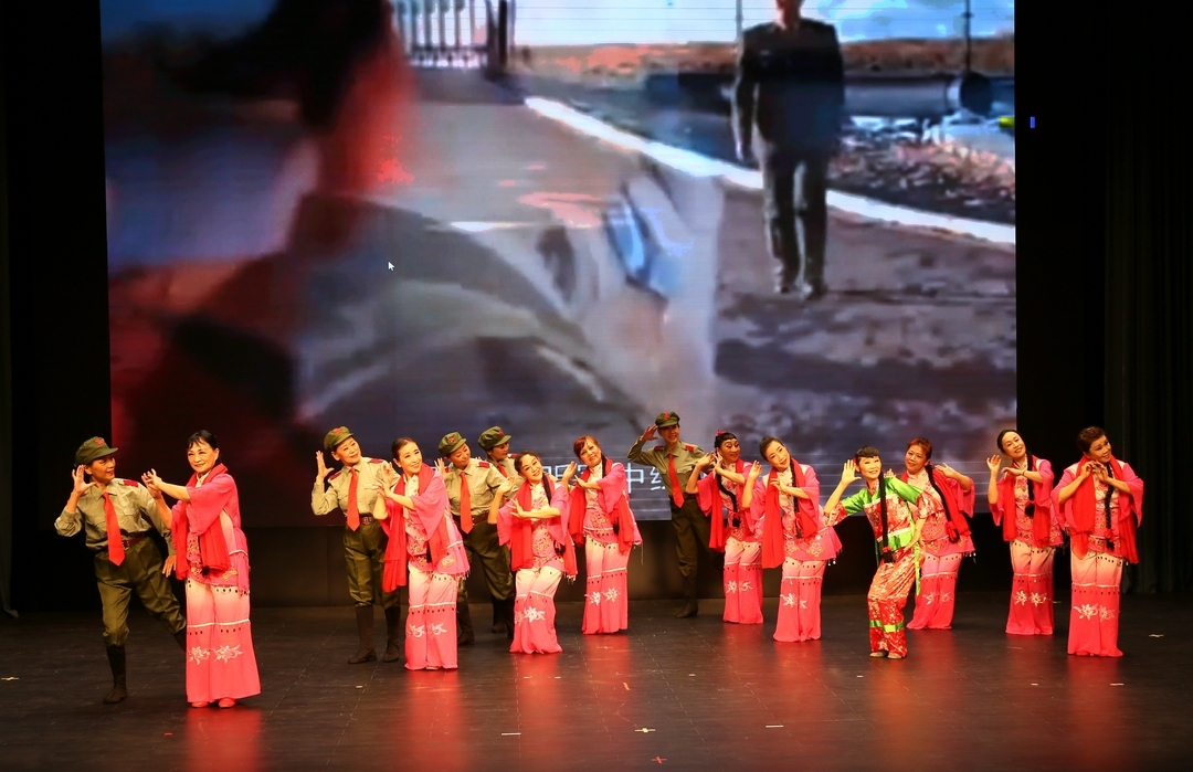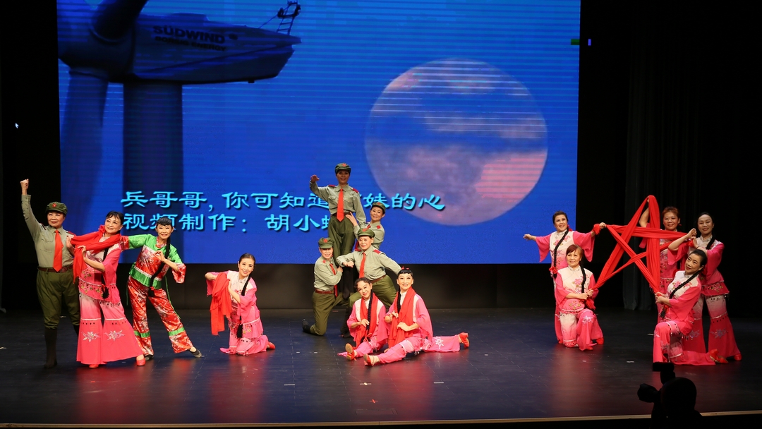 大地艺术团舞蹈队表演了体现军民情谊的原创歌曲舞蹈《兵哥哥,你可知道阿妹的心》,歌曲舞蹈由戚建伟作词,尚志明作曲,曹静演唱,张家明编曲,周萍莉编舞,胡小蝶背景视频制作。表演:陈苗珍、周萍莉、王剑英、陆春年、刘梨丽、陈晓梅、刘必芳、杨丽华、江玲、胡心红、邬蓓蓓、邓小华、李旭红、沈良露、闵华凤。 ![]()