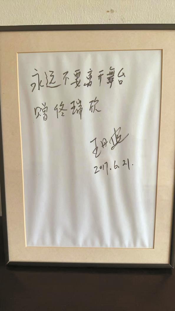 ![]() 晚年的王丹凤,岁月不败美人 ![]() 王丹凤(左)、秦怡(右)与本文作者 ![]() 上影剧团二楼一角 ![]() 王丹凤、向梅、牛犇与本文作者 ![]() ◆ 佟瑞欣 我经常会在安静的时候想起丹凤老师,这位美丽、低调又做了无数好事却从不张扬的人。我们想在剧团为她塑一座像,总要有人为好人做一点事情。今年,经过民盟上海市委批准,我们在上影演员剧团的小屋成立了丹凤支部,我相信丹凤老师一定会乐见其成,这是对她电影事业以及盟务工作的一种认可。 《小燕子》传唱几代人 王丹凤,新中国22大明星之一。20世纪40年代,17岁的她在影片《新渔光曲》中饰演女主角渔家女而被瞩目。1957年,电影《护士日记》里,她唱的这首插曲“小燕子,穿花衣,年年春天来这里……”成为一代又一代中国人童年时必唱的歌曲。 在我担任上影演员剧团团长以后,我曾多次来到华东医院9楼探望王丹凤老师。我记得,一年岁末,当我步入病房,丹凤老师正斜坐在窗边悠悠地梳着头,阳光打在丹凤老师的背后,那镶金的轮廓和年轮般的阴影,让我肃然起敬。我不敢上前,怕打扰到老人,但我的脑海里,几十年来的银幕记忆如火车窗外的风景飞速地闪回,《护士日记》《女理发师》《家》《春满人间》《海魂》……我仿佛感受到了时空交错,努力地想象,七十多年前的丹凤老师,是多么的风华青春?又有多少人为之倾慕? 我还记得,在另一个阳光明媚的午后,我带着女儿和儿子一同前往,孩子们小心翼翼地望着眼前面容清秀、白发如银的奶奶,仿佛也被丹凤老师跨越世纪的气韵所惊艳,但从他们的眼神中可以看出,他们感到陌生。于是,我唱起了“小燕子,穿花衣,年年春天来这里……”“哦!原来是唱《小燕子》的奶奶!”孩子们一瞬间就明白了,他们的眼神发亮了,在他们小的时候,尤其是过年的时候,大家都会要求孩子唱歌,唱得最多的,当然就是《小燕子》。我小的时候如此,我的孩子亦如此,相信现在的孩子也如此。就这么一首《小燕子》,跨越大江南北、春秋年华,竟然愈唱愈新,真可谓是奇迹! “永远不要离开舞台!” 在我每次临走的时候,我总会给照顾丹凤老师的阿姨送一点小礼物以表心意,我希望她能把丹凤老师照顾得更好一些,因为我很爱丹凤老师,上影演员剧团很爱丹凤老师。丹凤老师曾对我说,“如果我再年轻一点,我真想跟你一起合作拍一部戏!”这句话让我记忆犹新,丹凤老师是我们大家的偶像,她那么美丽、那么和蔼,相信有无数的男演员期盼着能和丹凤老师一起拍戏。我从来没有奢望,能有一天和丹凤老师合作,丹凤老师说出的话,让我感到由衷的幸福。 后来,我向丹凤老师提出了一个请求,请她为上影演员剧团留下手印,并写下一两句祝福的话。丹凤老师爽快地答应了,于是,在武康路“星光大道”上,留下了丹凤老师纤细秀丽的手印。丹凤老师为我们写下了“永远不要离开舞台!”是啊,她也是一位优秀的话剧演员,我们上影演员剧团的很多前辈艺术家都是从舞台走向银幕。在九十多岁高龄的时候,丹凤老师依然惦记着剧团,希望剧团演员能够多排话剧,和观众保持直接的交流。我把丹凤老师写的字小心地放在镜框里,摆在剧团二楼的古董书桌上,还有丹凤老师的画册,也一直摆在我天天坐着的椅子旁,我时常可以看到它们。 难忘最后一面 丹凤老师对我说过:“演员剧团不容易,如果剧团没有钱,我给你们!”“真希望看到你们排戏,我能作为一个观众安静地欣赏着你们的演出。”这些话零星记在我的脑海里,时不时地浮现,提醒我作为剧团团长应尽的责任。同时,一个小小的念头在我脑海中酝酿:能不能请丹凤老师回到剧团,和晚辈、和同行,乃至于和半个多世纪以来关心她、喜爱她的观众见一次面? 2017年,为庆祝中国人民解放军建军九十周年,上影演员剧团策划举办了“声·影”第二季——向红色经典致敬诵读活动,牛犇、杨在葆、向梅、梁波罗、陶玉玲等前辈纷纷参加,王诗槐、马冠英、崔杰、张晓林、何政军等也以电影人的方式向人民子弟兵致敬。在东方艺术中心首演前夕,我想到了丹凤老师。“丹凤老师,您愿不愿意来看看?”她眼睛一下亮了,我一惊喜,感觉有希望了。因为,丹凤老师生病之后,不太愿意出门,不愿意别人和她拍照,尽管每次我们去,她都会高兴地与我们合影。后来经过我们协调,这个奢望变成了现实。在此之前我曾和丹凤老师说,我帮您找一个化妆师,再给您做套衣服。“不行!化妆师的钱我出,服装我也自己准备,不许你们给我!”包括我们当天为她安排了可以直接推入轮椅的车,丹凤老师也坚持自己承担这部分费用。在这一方面,她始终坚持自己的原则,不希望给别人增加负担。那天晚上,我怕丹凤老师过于劳累,就安排她在上场口的角落安安静静地看了我们小半场的演出,当所有演员谢幕的时候,我推着丹凤老师的轮椅走到了舞台中央,台上的演员感到兴奋,台下的观众更是感到惊喜,大家非常激动,看到了久违的丹凤老师阔别几十年再次走上了她热爱的舞台。这是因为丹凤老师对舞台的热爱,对剧团的爱,观众才能再次见到她晚年的形象。 就在2018年,丹凤老师离世的那年,我们上影演员剧团重新回归到曾经的旧址,武康路395号。丹凤老师和秦怡老师都曾答应过我,一起把上影演员剧团的牌子重新挂上,一起为剧团揭开红纱幕。可真正到了那一天,丹凤老师已经不在了。在我得到丹凤老师离