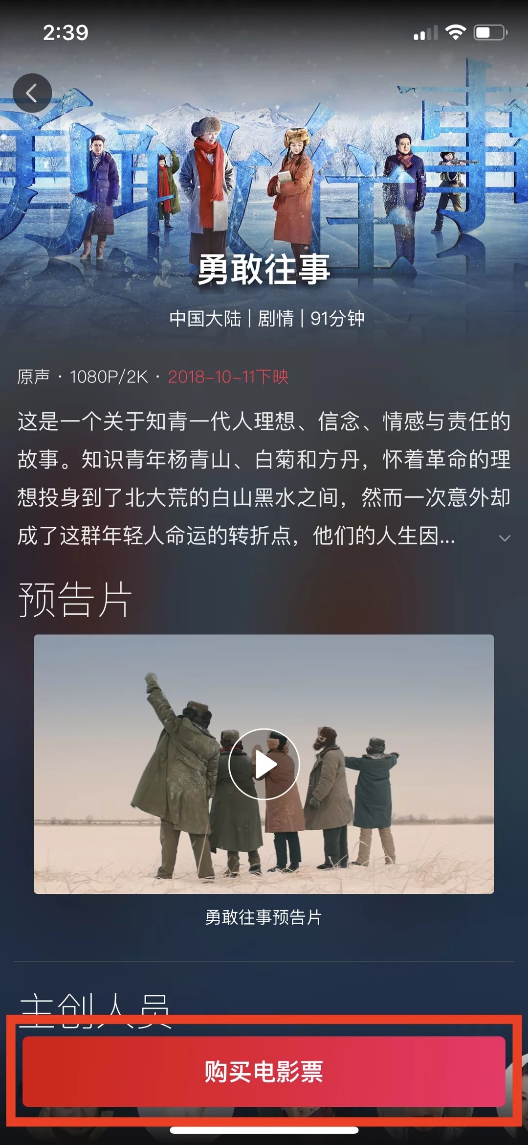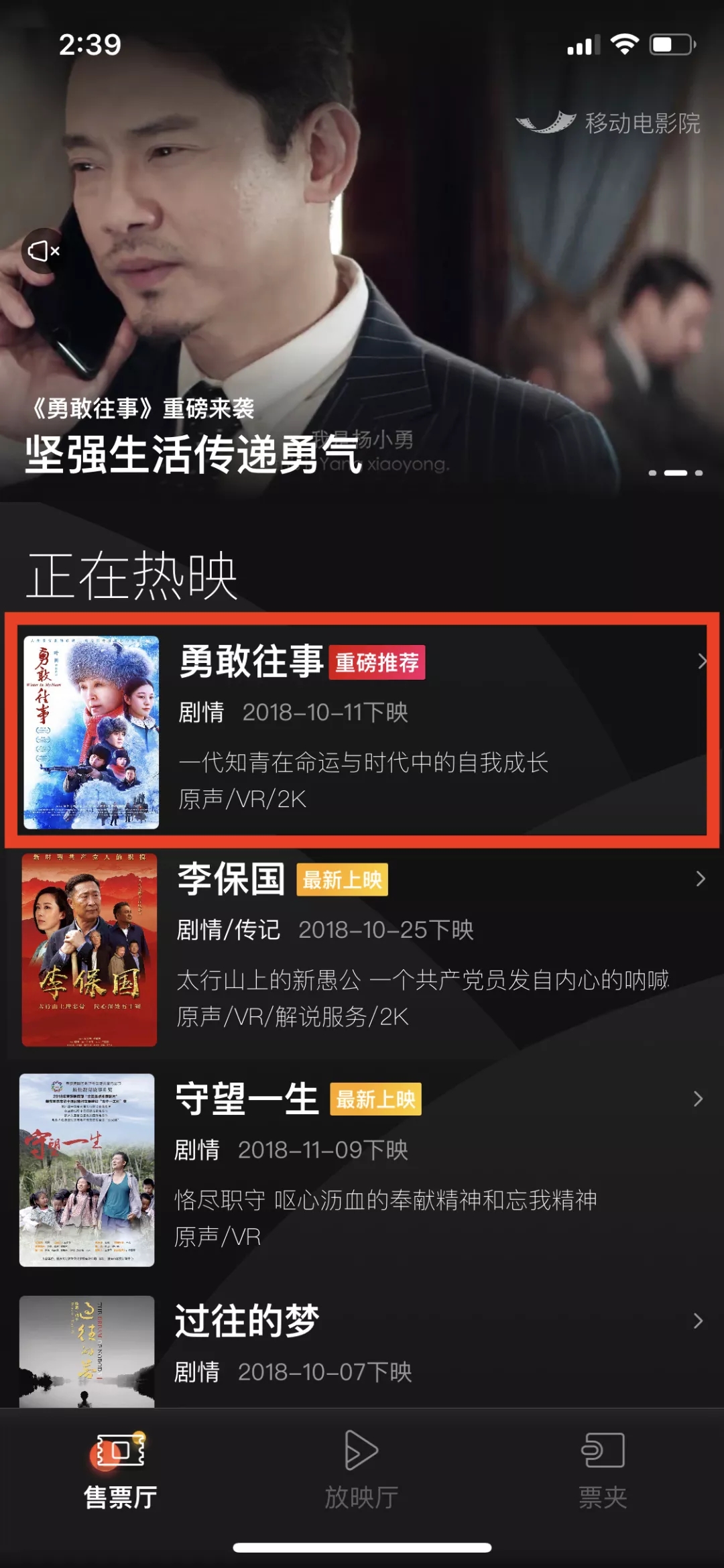 电影《勇敢往事》移动电影院购票攻略