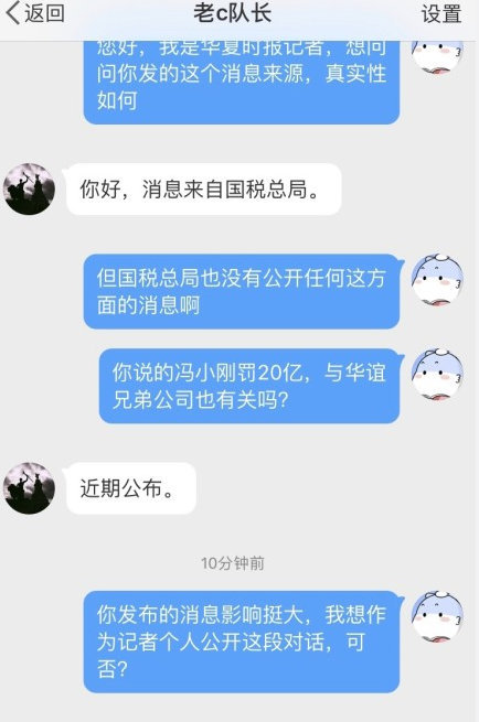 有网友“记者金微”发布了一条求证信息称,“老c队长”回复他说,该消息来自国税总局。