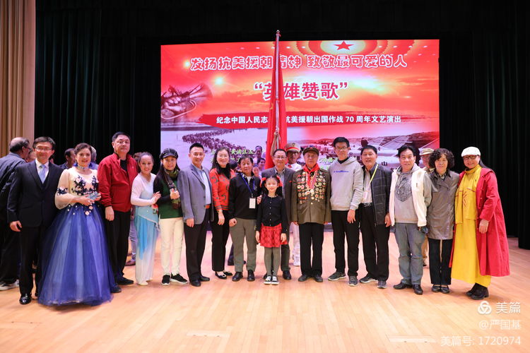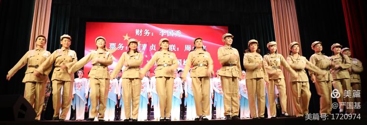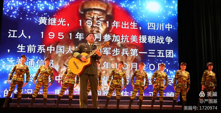 节目单 十三、表演唱《写封信给黄继光》 演唱者:朱祖怀 伴舞:爱辉知青艺术团 ![]() 写封信给黄继光(歌词) 过去的故事没人再讲, 好像这一切都被遗忘, 可当我凝望那尊雕像, 壮烈激荡着我的心房, 已经好多年没有打仗, 问自己是否还有胆量 可如果明天就要上战场 到底敢不敢第一个上? 写封信给黄继光, 问问他那一刻怎么想, 我想他一定会告诉我, 这才是男人的胸膛, 挡得住风雷雨雪霜 挡得住烈火与刀枪 当他站立时山河苍茫 当他倒下时百花怒放 过去的故事没人再讲, 好像这一切都被遗忘, 可当我凝望那尊雕像, 壮烈激荡着我的心房 已经好多年没有打仗, 问自己是否还有胆量 可如果明天就要上战场 到底敢不敢第一个上 写封信给黄继光 听我们的誓言在回荡 告诉他我们和他一样 挺起了军人的胸膛 一样爱祖国和家乡 一样筑铁壁与铜墙 当我出征时请别忧伤, 当我凯旋时尽情歌唱。 ![]() 十四、时装秀《軍魂》 演出:建英时装队 ![]() 十五、女声独唱:《我的中国梦》 演唱者:何俊秋 伴舞:董卫国 罗家维 ![]() 十六、舞蹈《不忘初心》 演出:石二街道洋韵舞蹈队 ![]() 十七、大合唱《英雄赞歌》 领唱:何俊秋 合唱:上海腾韵交响乐团合唱队 伴奏:上海腾韵交响乐团 ![]()