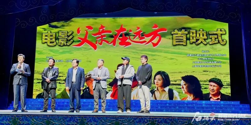 电影《父亲在远方》主创人员在首映式现场。石榴云/新疆日报记者 高芳摄