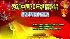 为庆祝新中国70华诞、上海师范大学建校65周年,2019年12月24日,上海师范大学人文学院、上海颐若文化传播有限公司、上海音乐文学学会、上海师范大学音乐学院在上海师范大学音乐厅联合举办了为新中国70年纵情歌唱原创诗与歌作品展演, 抒发与新中国同呼吸共命...