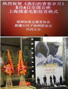 2015年5月4日下午,我国首部反映新疆量十万上海知青在新疆生活经历的电影《我们的青春岁月》首映仪式在上海国泰电影院隆重举行。5月4日,该片同时在全国正式公开放映。 故事片《我们的青春岁月》以上海知青戴根发等为创作原型,通过影片中人物形象的深入刻画...