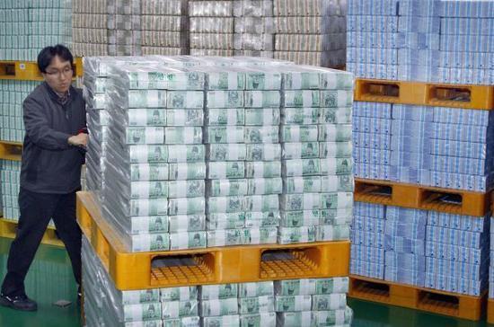 在韩国首尔,大量韩元现钞从首尔的的韩国银行分送到首尔的其他银行。(新华社)