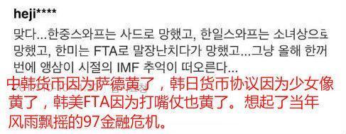 有媒体在报道中这样表明韩国政府努力实现协议续签的决心:“在美国联邦储备宣布缩小资产表和不断加息,朝核危机加剧的情况下,韩国必须在经济外交上倾尽全力。” “倾尽全力”的用意,众多韩国网友们也心领神会。 在韩媒相关新闻报道下方,网友们的留言都是这样的画风: ![]()