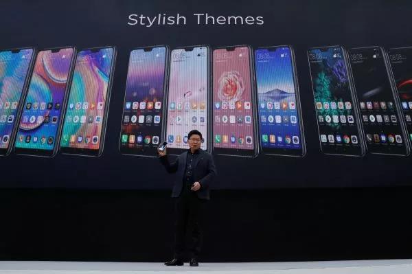 ▲3月27日,华为消费业务CEO余承东在巴黎发布会上介绍华为新款高端智能手机P20系列。(路透社)