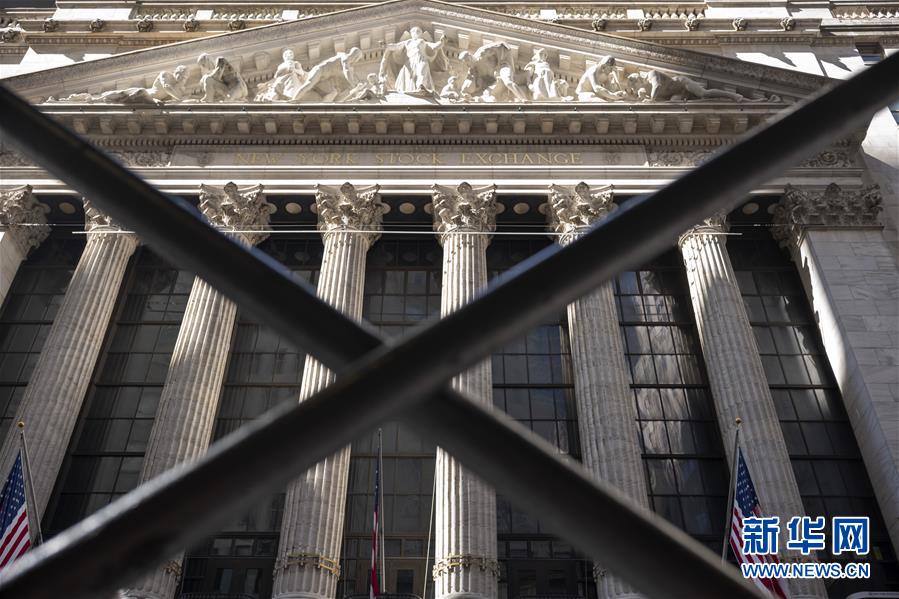 这是3月9日拍摄的美国纽约证券交易所大楼。纽约股市9日开盘出现暴跌,随后跌幅达到7%上限,触发熔断机制。新华社记者 李木子 摄