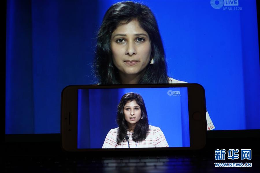 4月14日,在美国首都华盛顿,国际货币基金组织(IMF)首席经济学家吉塔·戈皮纳特出席视频新闻发布会。国际货币基金组织(IMF)14日发布新一期《世界经济展望报告》,预计今年全球经济将萎缩3%,衰退程度远超2008年国际金融危机引发的经济下滑,为上世纪30年代大萧条以来最糟糕的全球经济衰退。 新华社记者 刘杰 摄