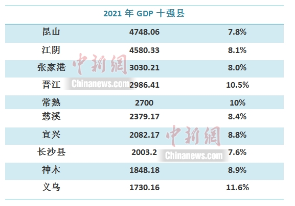 随着各地陆续发布2021年GDP数据,最新GDP十强县名单也出炉了,分别是昆山、江阴、张家港、晋江、常熟、慈溪、宜兴、长沙县、神木和义乌。 ![]()