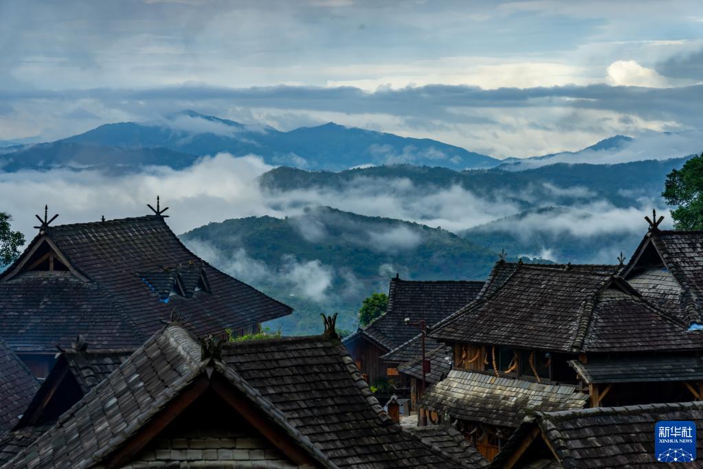 景迈山云海(5月12日摄,无人机照片)。新华社记者江文耀摄