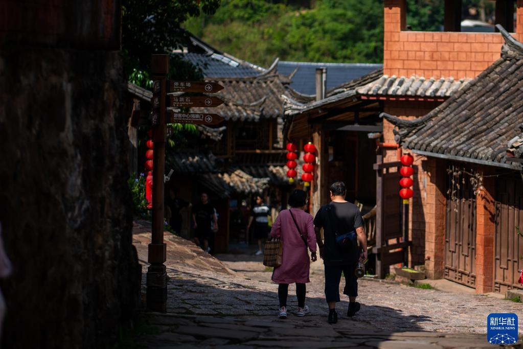 游客在云南省宁洱县那柯里茶马古道小镇游览(5月14日摄)。新华社记者江文耀摄