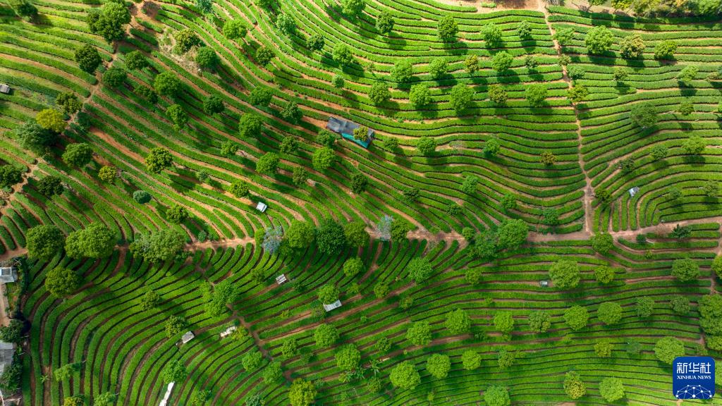 云南普洱市思茅区南屏镇整碗村的有机茶叶基地(5月13日摄,无人机照片)。新华社记者江文耀摄