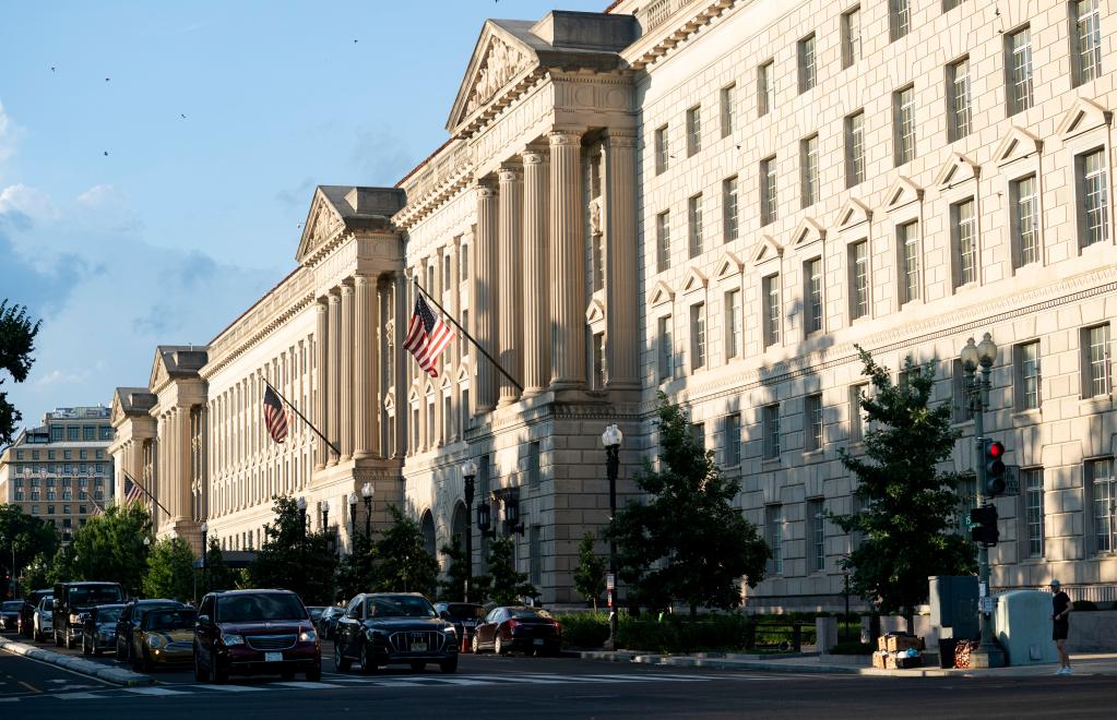 这是7月28日在美国首都华盛顿拍摄的美国商务部大楼。(新华社记者刘杰 摄)