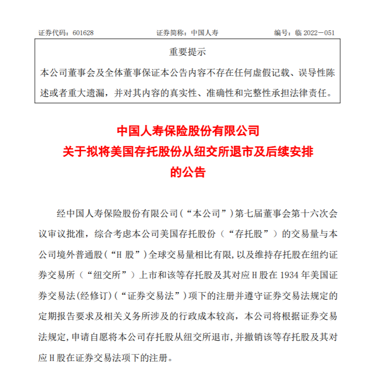 8月12日晚间,中国人寿率先发布公告称申请自愿将公司存托股从纽交所退市,并撤销该等存托股及其对应H股在证券交易法项下的注册。随后,中国石化、中国石油、中国铝业、上海石油化工股份公司陆续发布公告称拟将美国存托股份从纽约证券交易所退市。 ![]() 证监会有关部门负责人12日表示, 上市和退市都属于资本市场常态。根据相关企业公告信息,这些企业在美国上市以来严格遵守美国资本市场规则和监管要求,作出退市选择是出于自身商业考虑。这些企业都在多地上市,在美上市的证券占比很小,目前的退市计划不影响企业继续利用境内外资本市场融资发展。中国证监会尊重企业根据自身实际情况、按照境外上市地规则作出的决定。将与境外有关监管机构保持沟通,共同维护企业和投资者合法权益。 经济学家张奥平告诉界面新闻,中石油等多家公司拟从纽交所退市是“以我为主”主动作为的策略选择。首先,中石油等多家公司拟从纽交所退市背后更深层次的原因是全球化退潮,这不仅包括产业、贸易合作,还涵盖了金融、资本合作等领域。 其次,截至7月底,已有159家中概股被列入“预摘牌名单”中。不足半年时间,超过半数的中概股已经被列入“预摘牌名单”,可预见,未来被美国证监会列入摘牌的中概股数量会越来越多,除非全球化退潮的趋势被扭转。“中石油等多家公司拟从纽交所退市,是提前为未来的更大不确定性做好充足的准备。”张奥平指出。 在张奥平看来,中国的产业结构、商业生态和西方国家有着本质的不同,在当前全球化加速退潮的情况下,进行全面注册制改革的中国特色现代资本市场将会对中国市场主体企业起到更好的支撑作用,助力其实现高效的融资发展。所以,市场主体、投资者也应用下一个五年的眼光来看现在的逻辑,对中国资本市场的发展也应该更加理性乐观。 资深投行人士王骥跃向界面新闻说:“对企业来说确实也无所谓,不是主要上市地,流通量也很少。后面主要还是看互联网及新经济中概股怎么发展,主流的也已经去香港上市了,影响不会太大,当然对融资还是会有影响的。受影响最大的是那些已经或者拟获得美元基金支持的公司。” 据了解,对中概股来说,回港上市是一种较好的选项,选择回港上市是对冲海外潜在风险的优先选择,此外,回港上市可扩展融资渠道,优化股东结构、提升流动性等。 截至目前,已经有20余家公司回港二次上市,在港双重上市逐渐成为中概股所青睐的上市选择。 责任编辑:日升 (责任编辑:日升) |